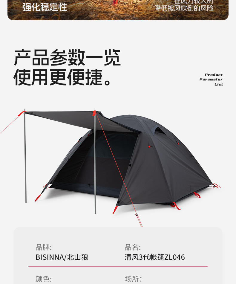 Beishan Wolf 텐트 야외 캠핑 텐트 접이식 휴대용 방풍 방수 자외선 차단제 더블 레이어 경량 야외 텐트