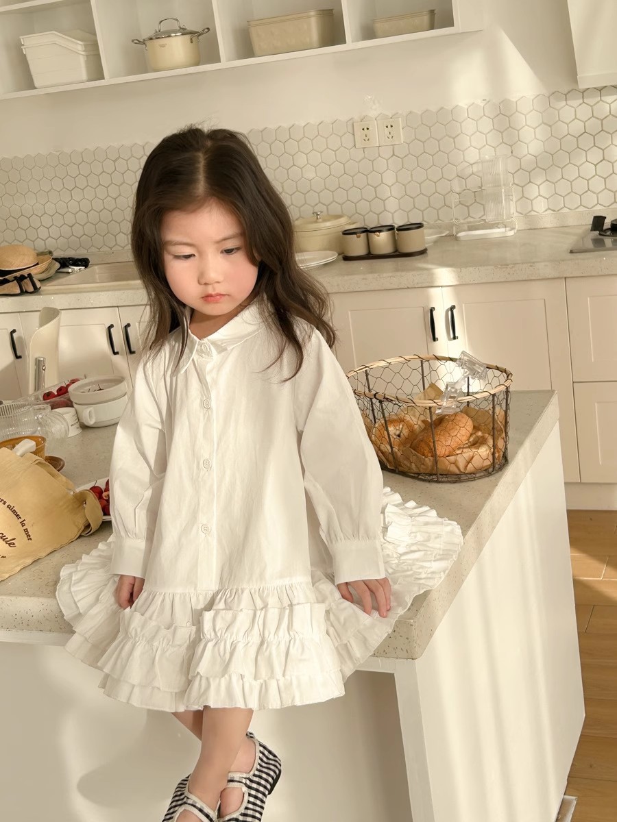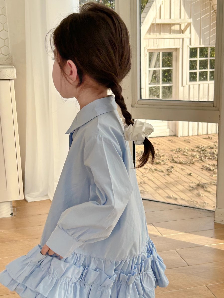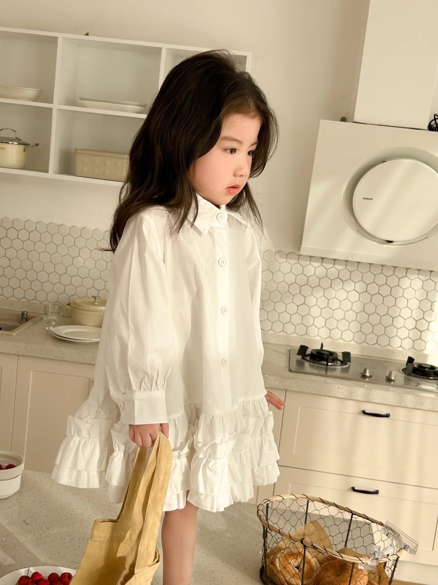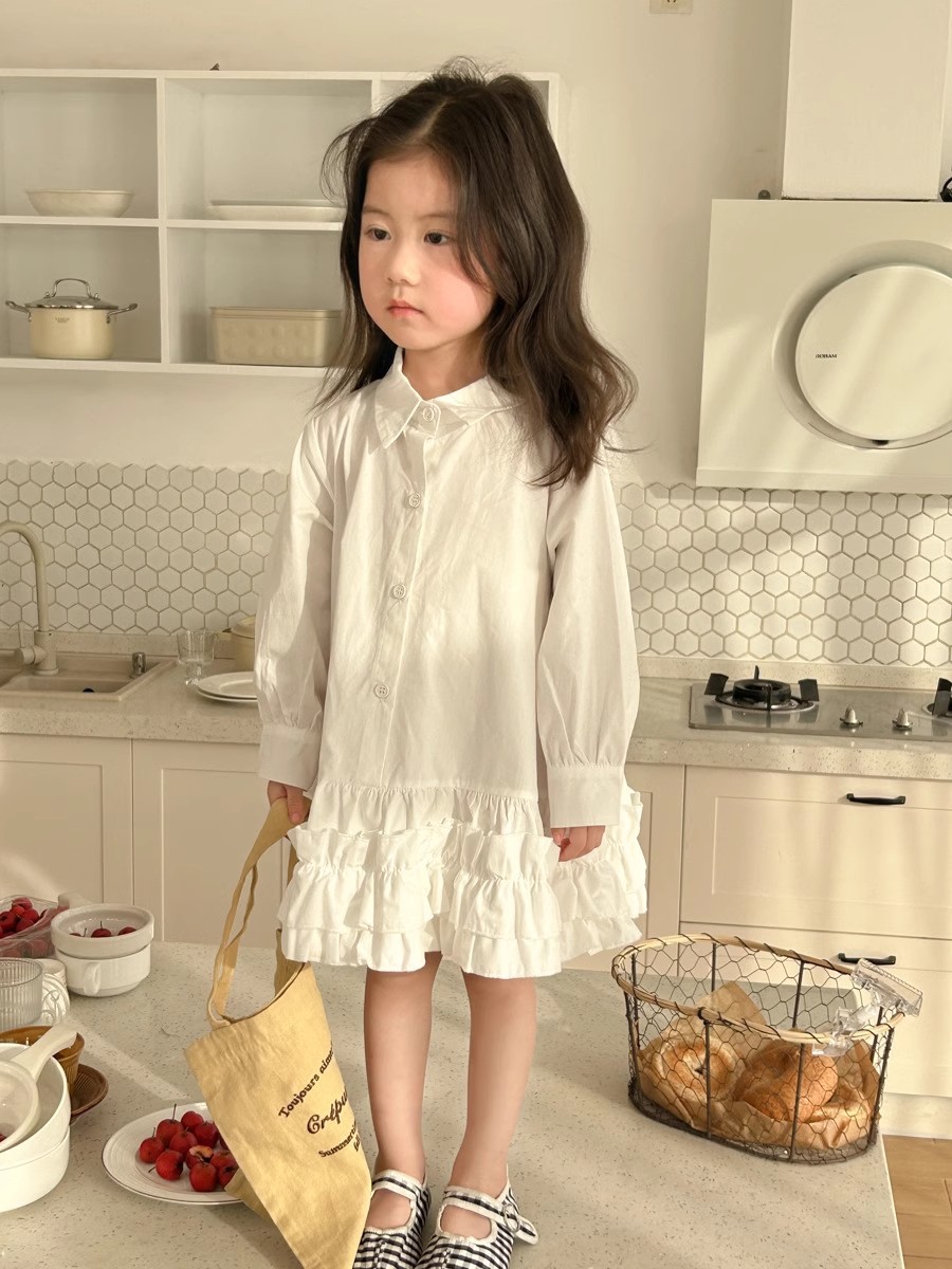 크림 셔츠 드레스 2025 봄과 가을 새로운 스타일 소녀 옷깃 긴 소매 공주 드레스 어린이 드레스 유행스토어 가기