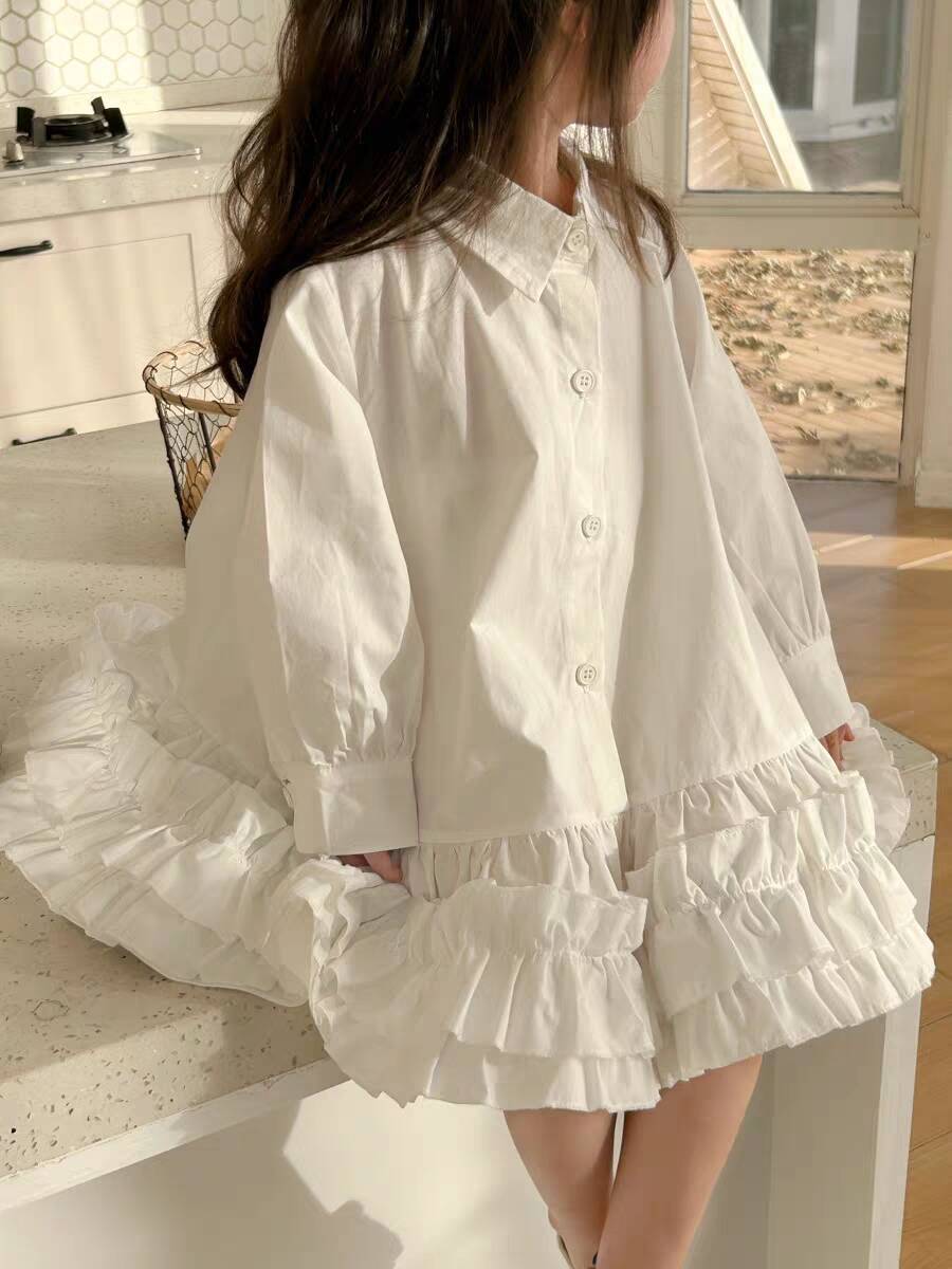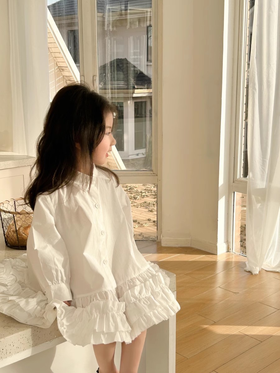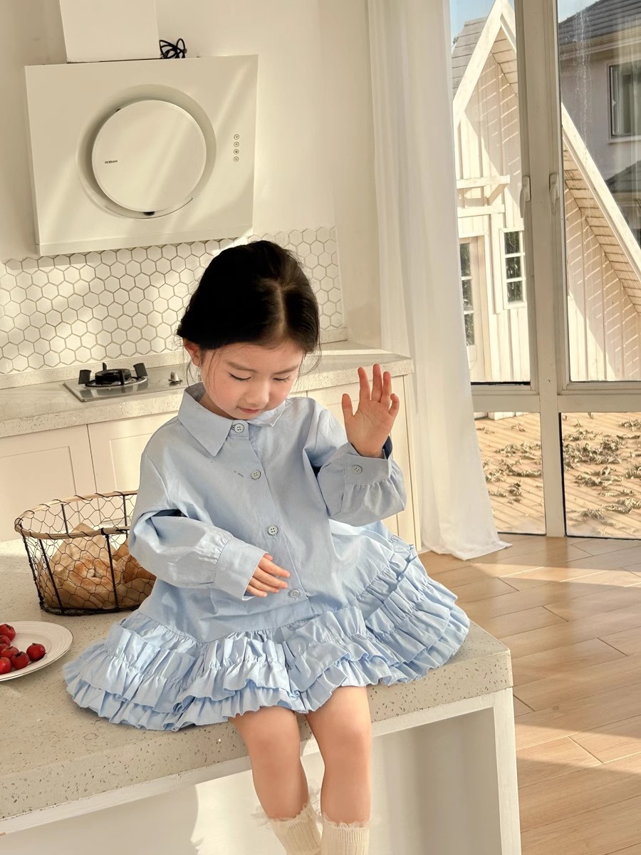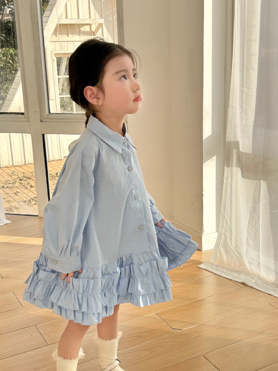 크림 셔츠 드레스 2025 봄과 가을 새로운 스타일 소녀 옷깃 긴 소매 공주 드레스 어린이 드레스 유행스토어 가기