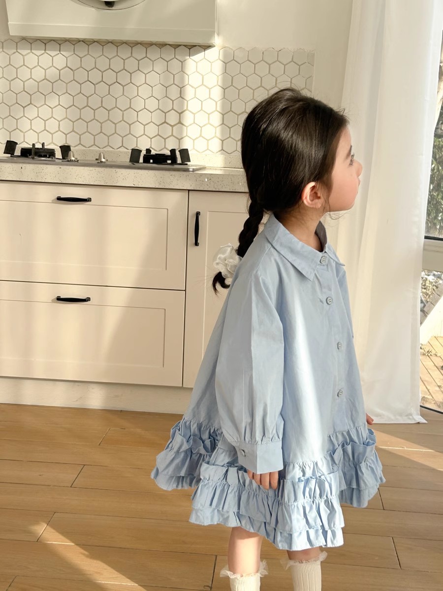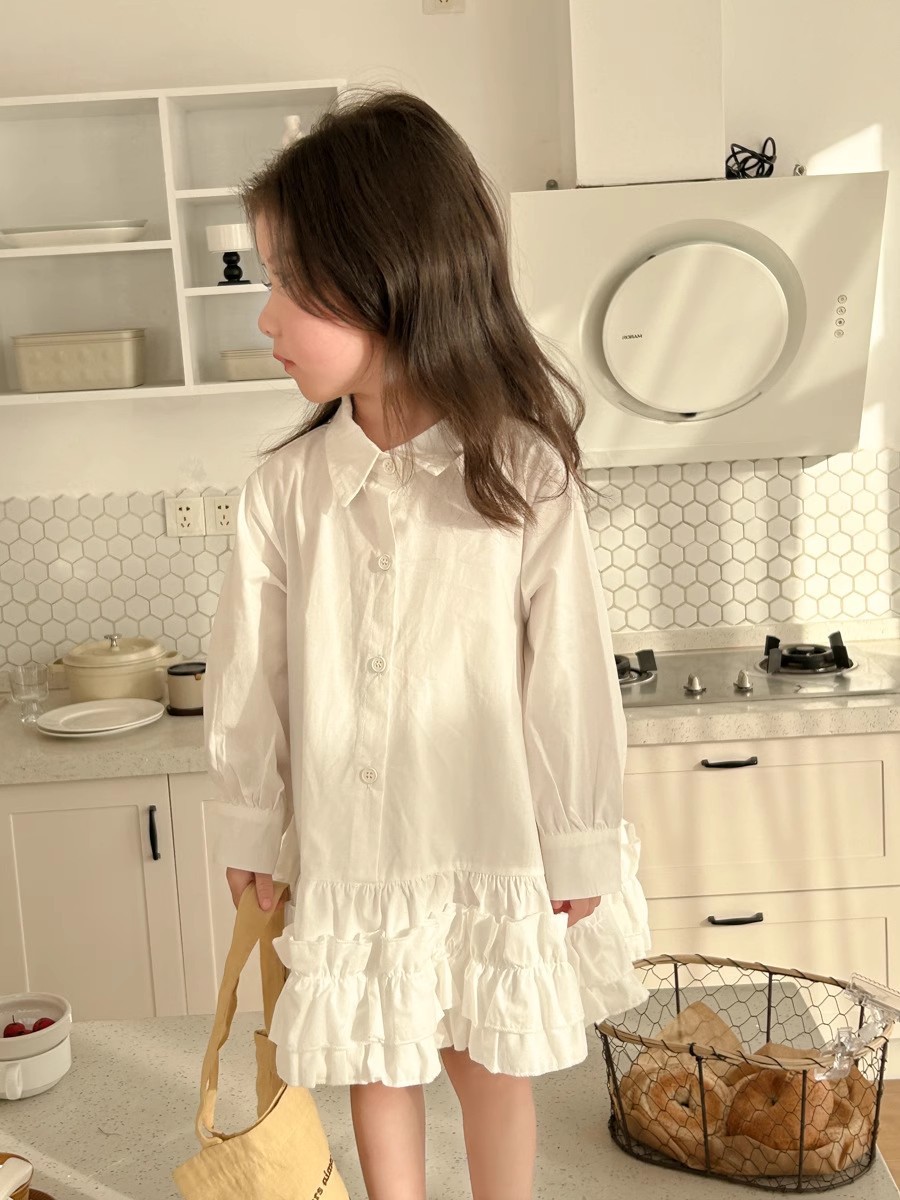 어린이 Xingyuan 여자 셔츠 원피스 봄 새로운 도착 어린이 세련된 한국 스타일 봄, 여름, 가을 옷깃 주름 공주 원피스스토어 가기