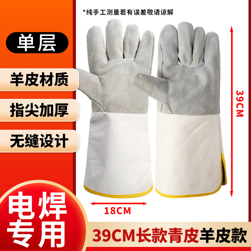 • 긴 녹색 가죽 용접 장갑 [양가죽/단일 레이어]]
