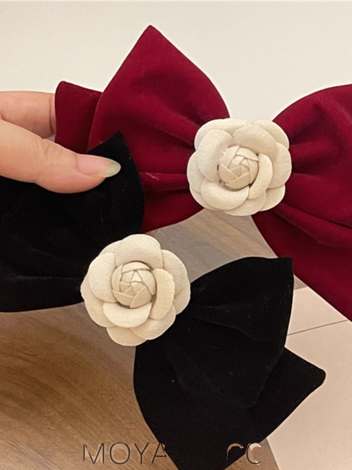 유행 스웨이드 머리핀 우아한 붉은 활 꽃 클립 머리 머리 머리 머리 고급 봄 클립 머리핀