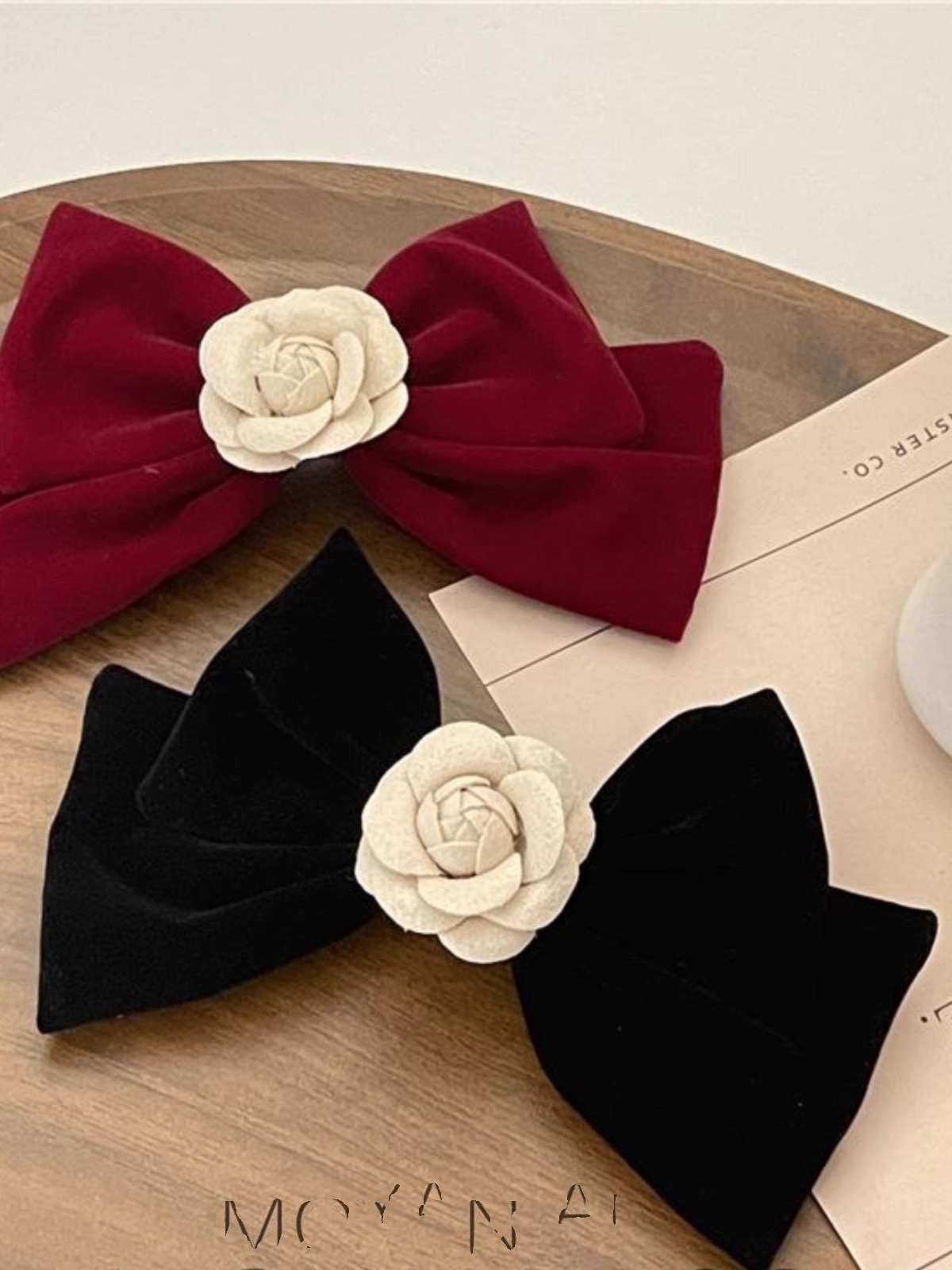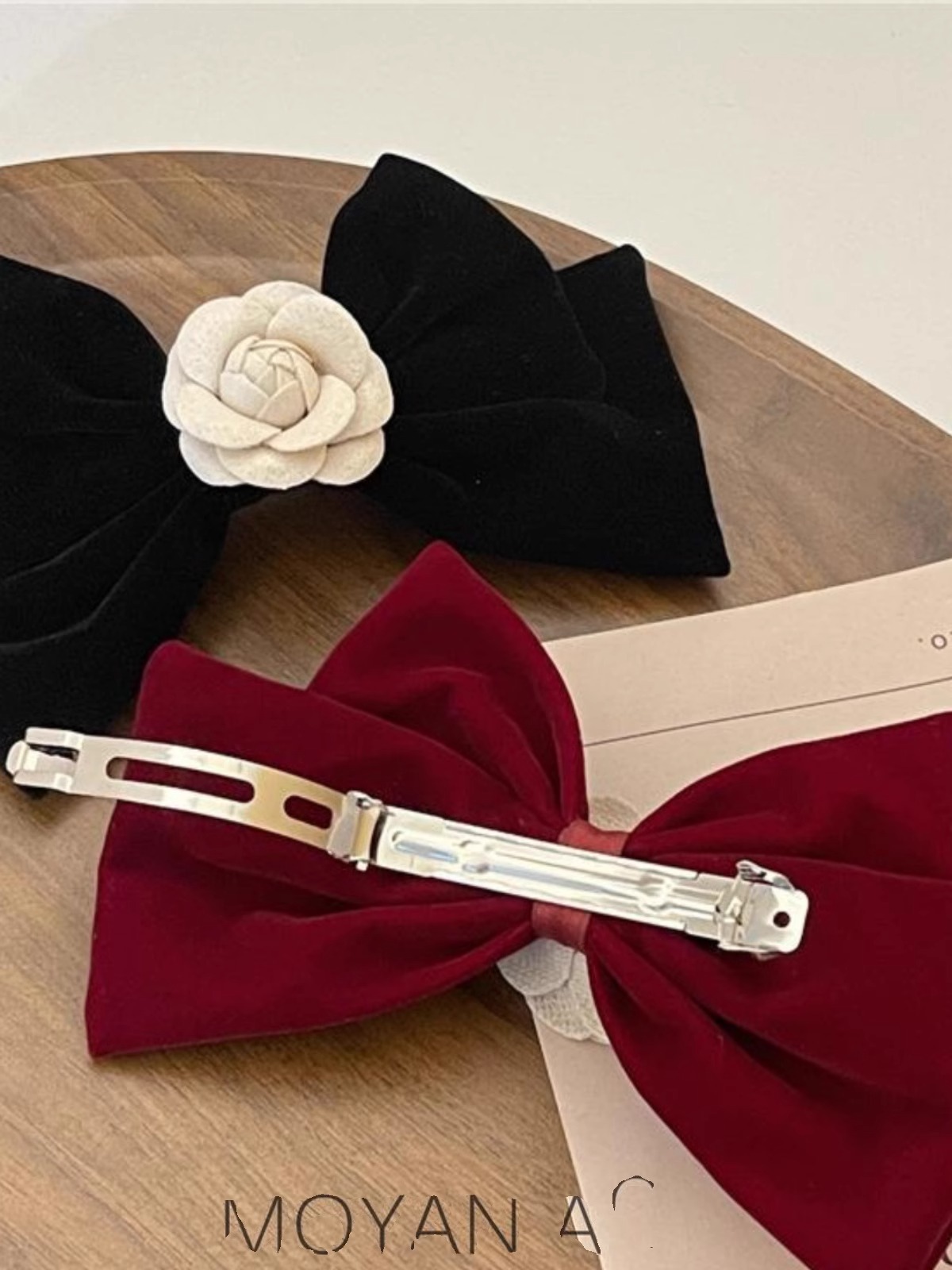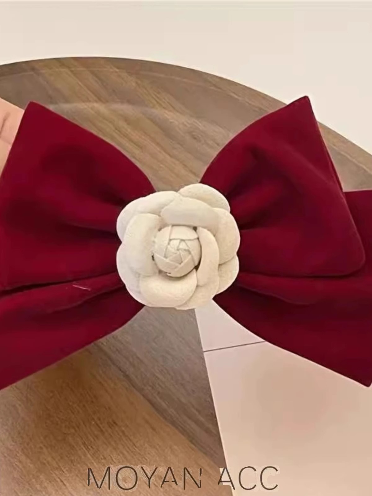 유행 스웨이드 머리핀 우아한 붉은 활 꽃 클립 머리 머리 머리 머리 고급 봄 클립 머리핀스토어 가기