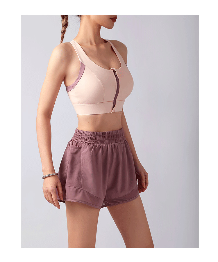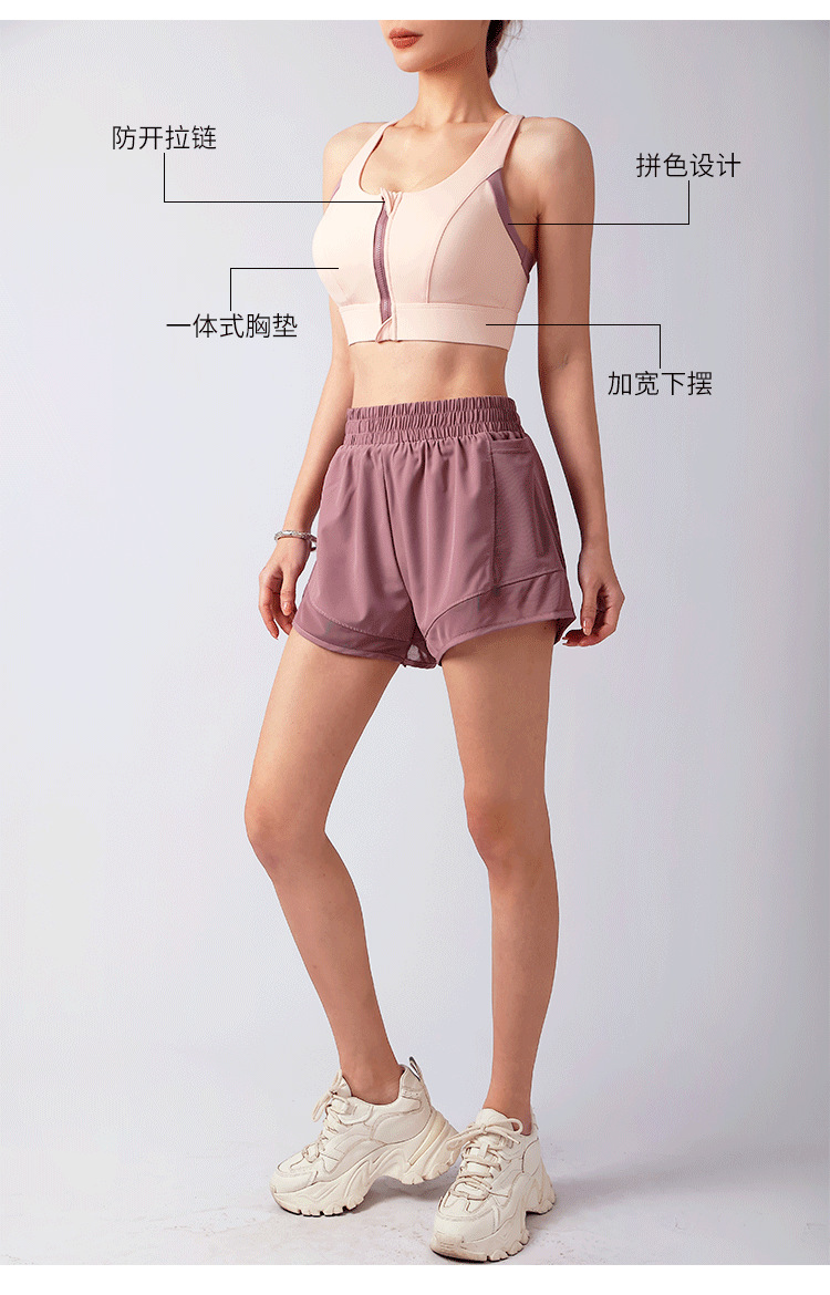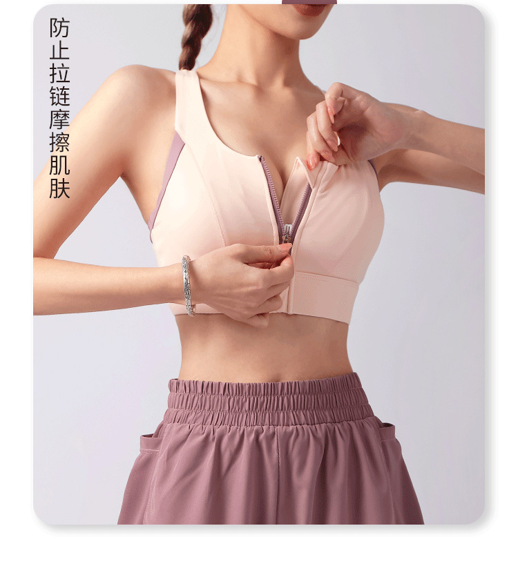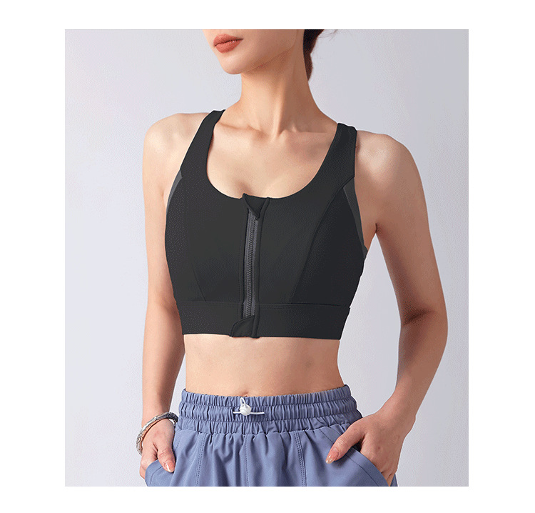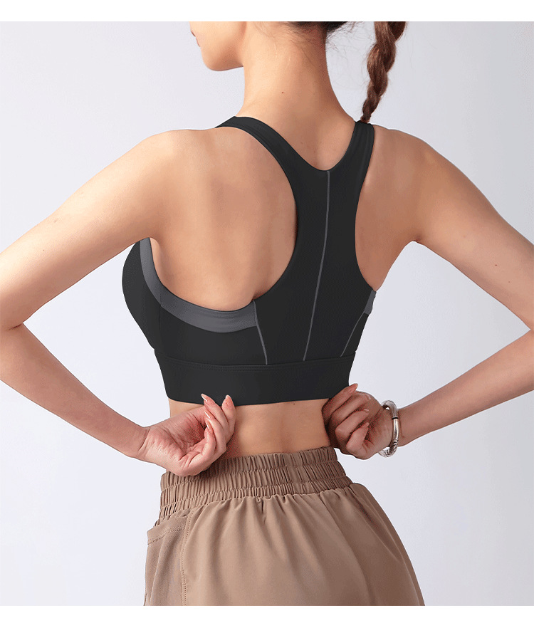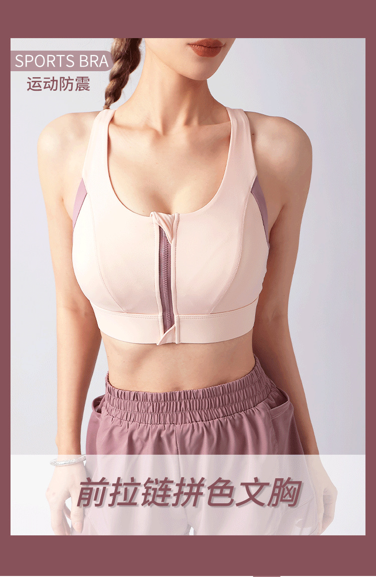컬러블록 프론트 지퍼 요가탑, 아름다운 등라인, 올인원 푸쉬업 스포츠 브라, 통기성 러닝 속옷, 피트니스 탑스토어 가기