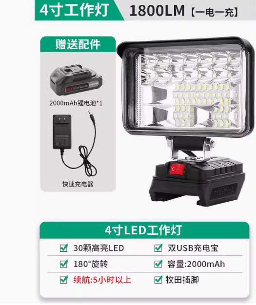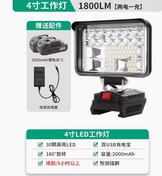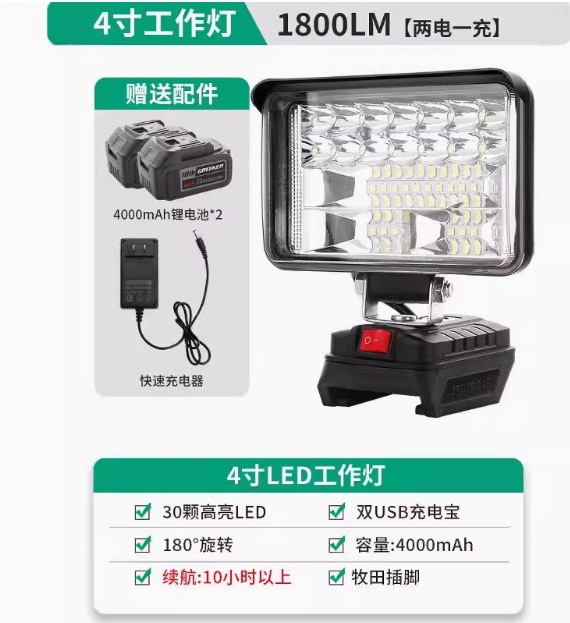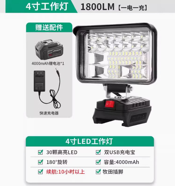 • 4 인치 작업 라이트 베어 메탈 [배터리 없음]]
