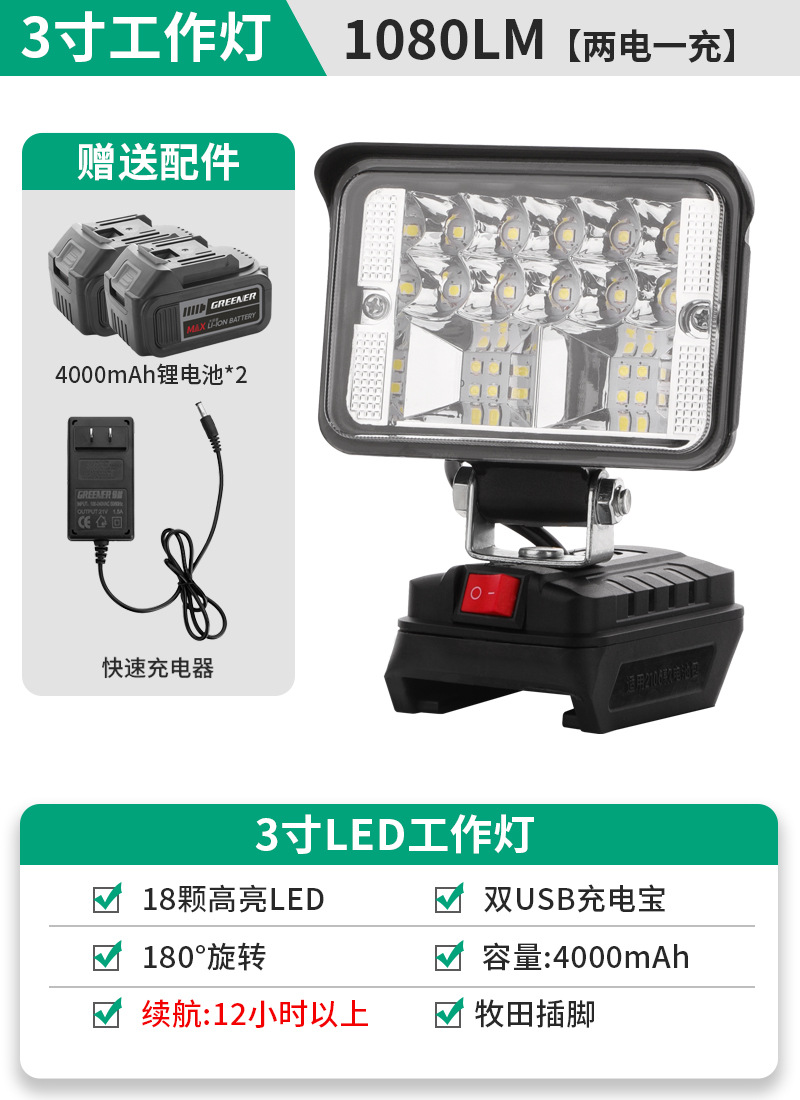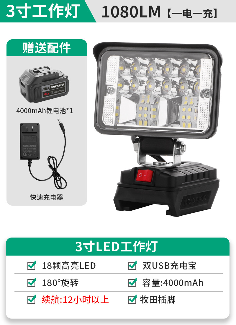 • 3 인치 작업 라이트 베어 메탈 [배터리 없음]]
