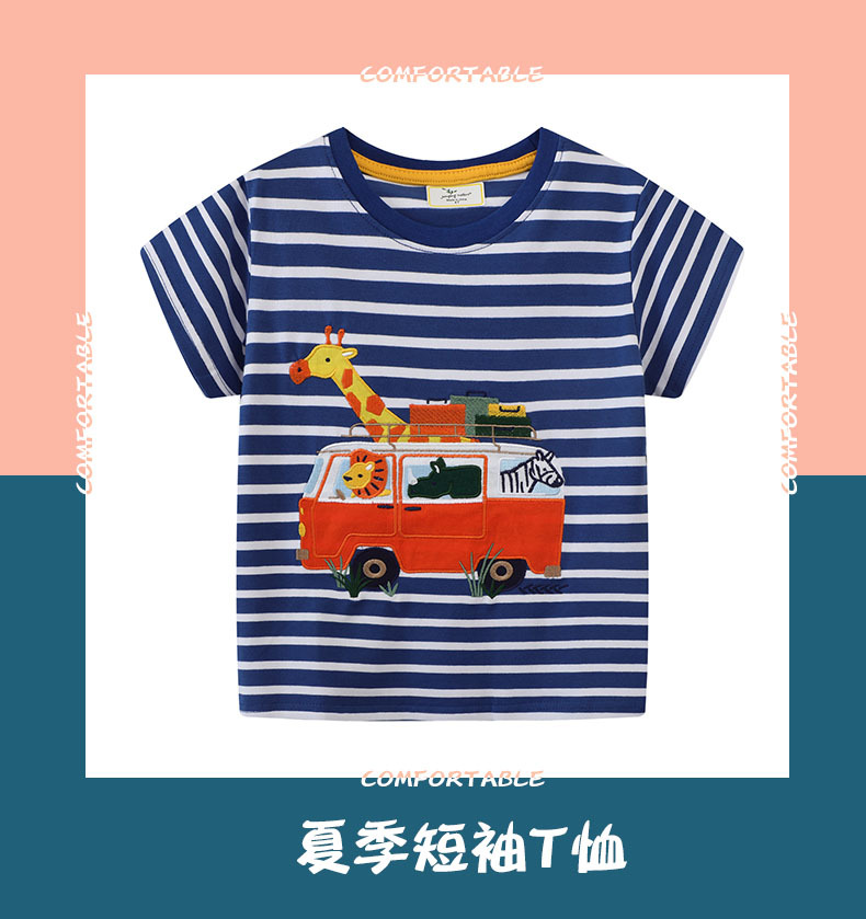 2025 여름 신상 남아 티셔츠 만화 버스 차량 남아 이너웨어 순면 유럽 및 미국 스타일 아동 티셔츠스토어 가기