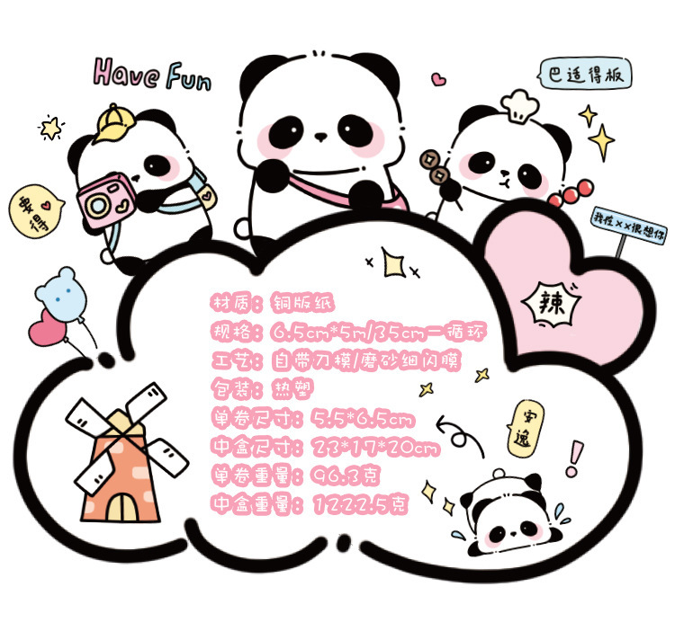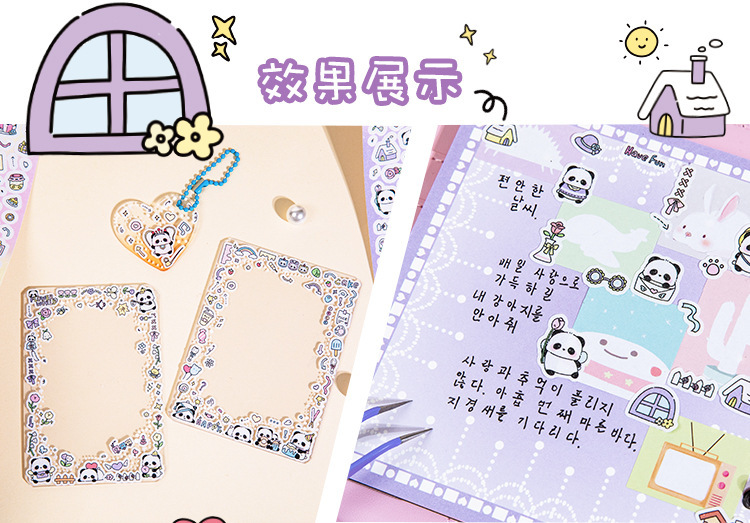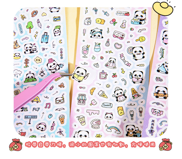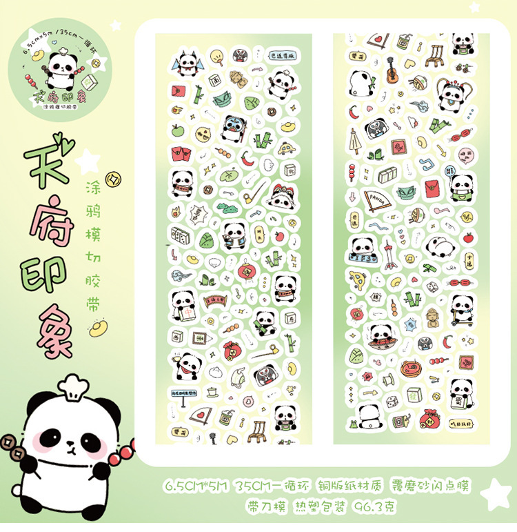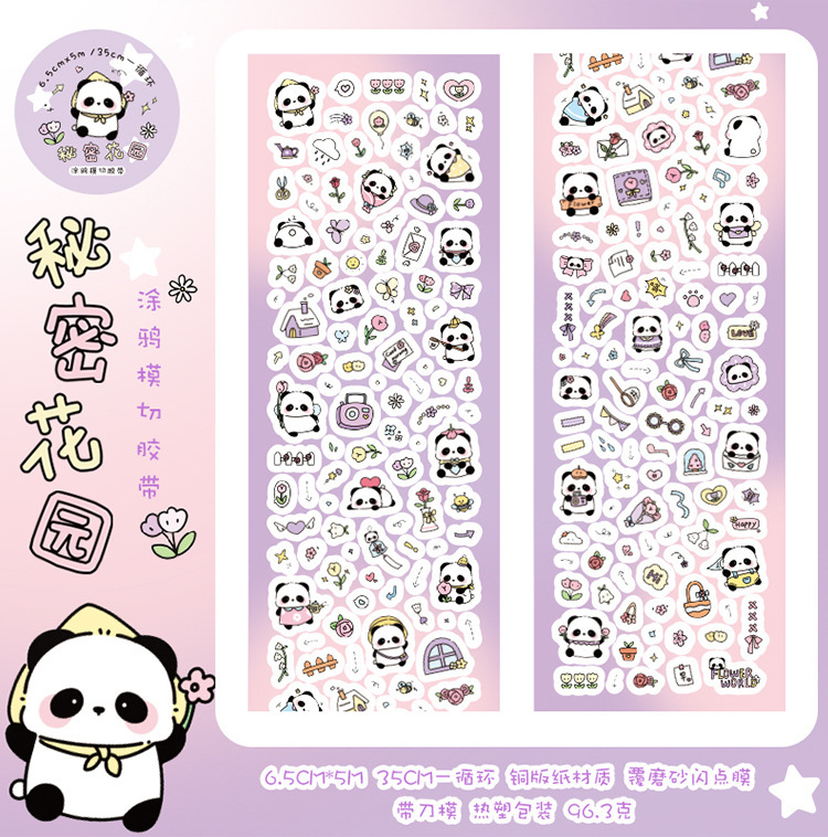 Yuxian 낙서 다이 커팅 테이프 꽃과 잎 귀여운 일일 시리즈 내셔널 스타일 팬더 저널 장식 구오 카드 콜라주