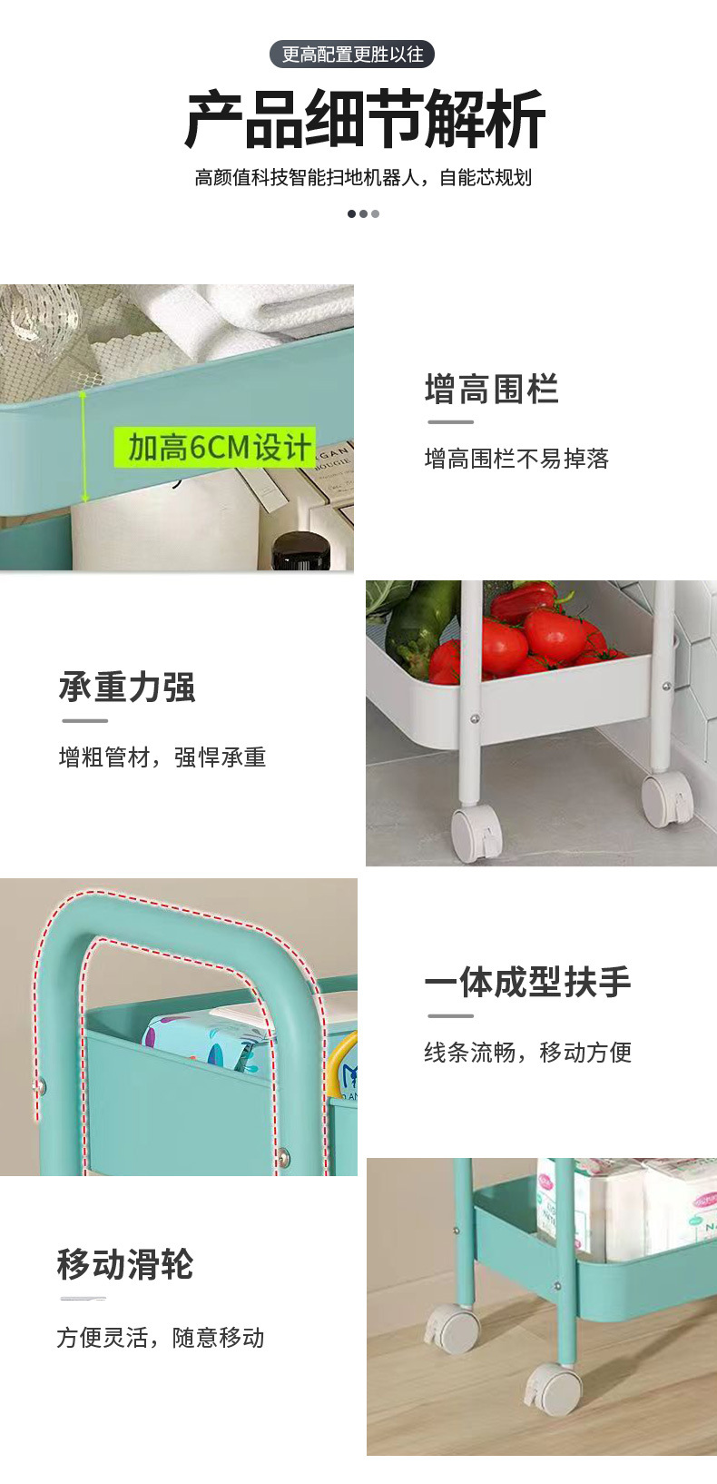 트롤리 스토리지 랙 주방 욕실 침실 간식 아기 거실 모바일 층 멀티 레이어 스토리지 랙
