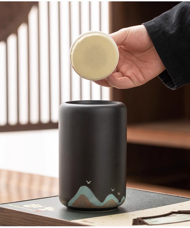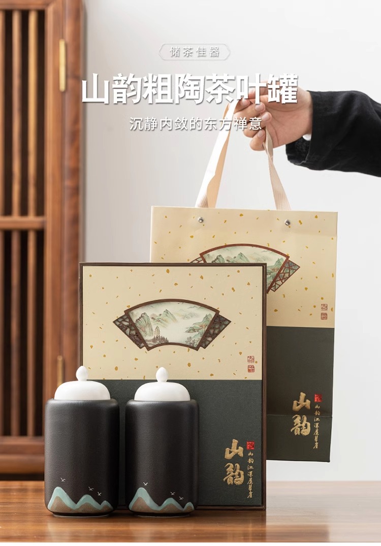 • 손으로 그린 풍경 이중 항아리 산 선물 상자 (흑백)