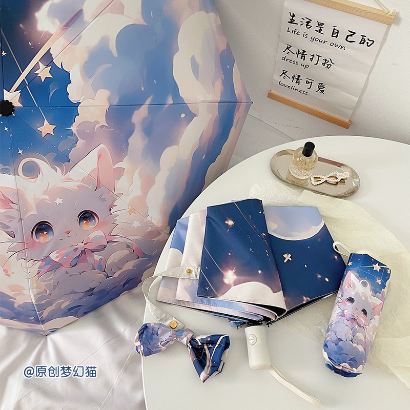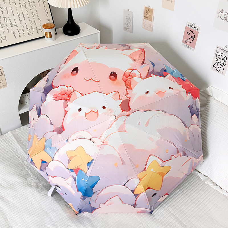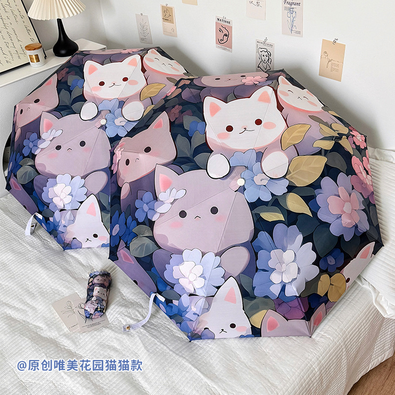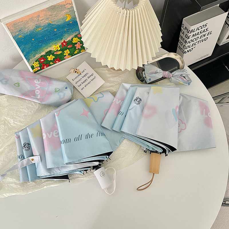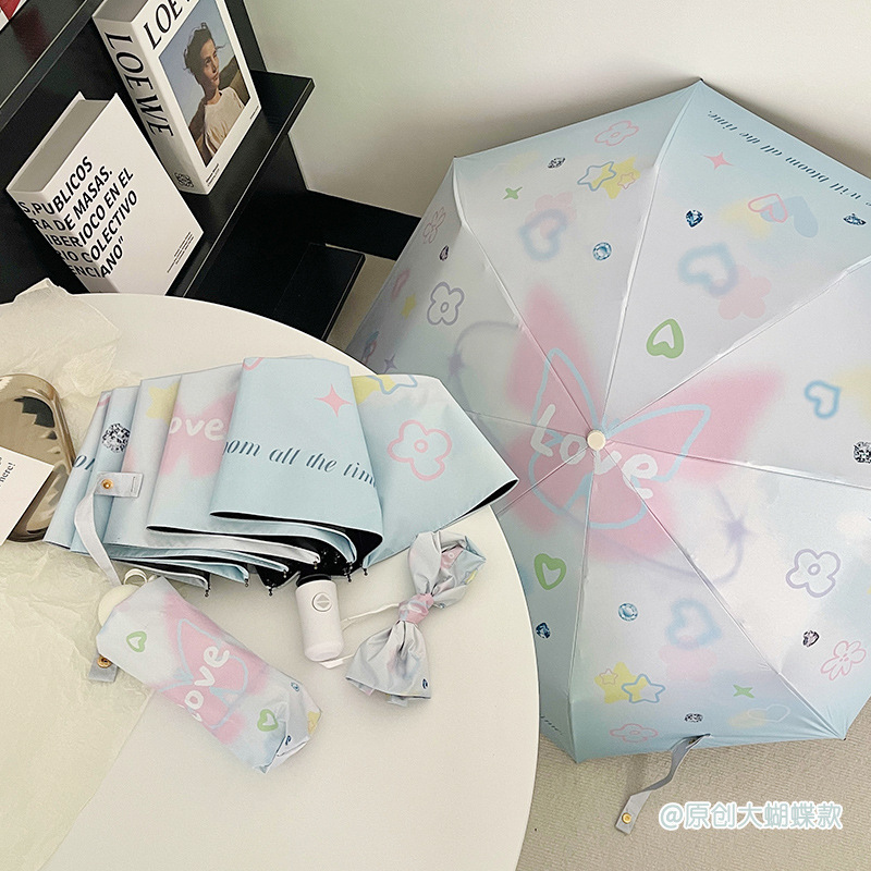 에 소녀 심장 검은 플라스틱 접이식 우산 태양 보호 자외선 보호 비 이중 사용 자동 태양 우산 휴대용 태양 우산스토어 가기