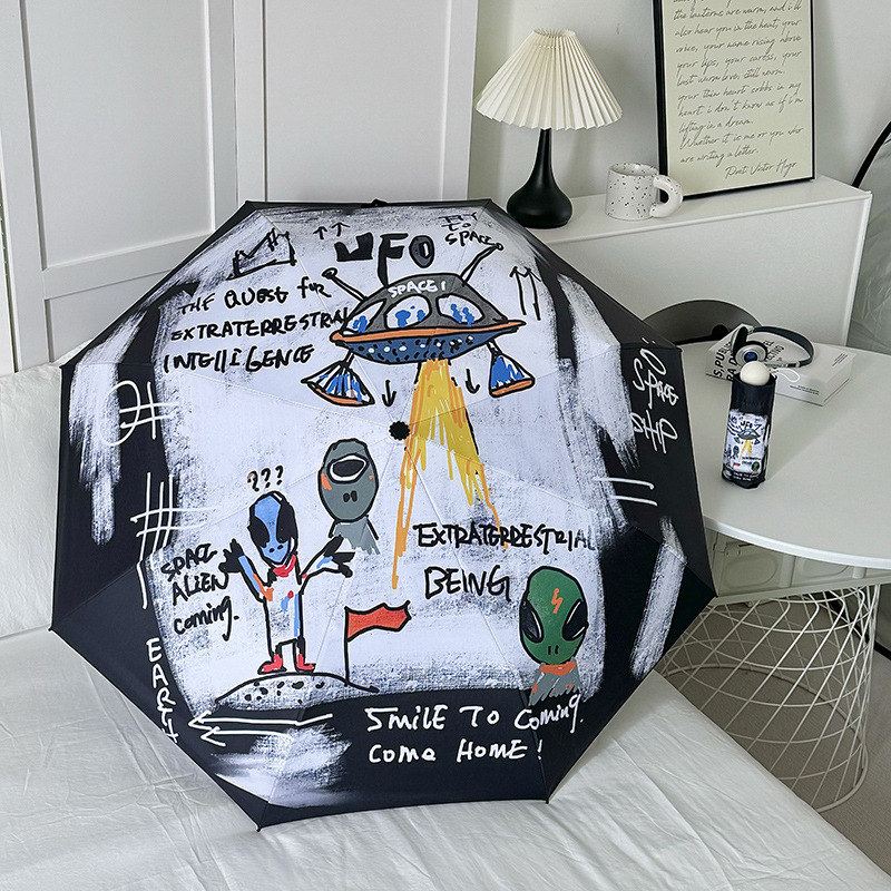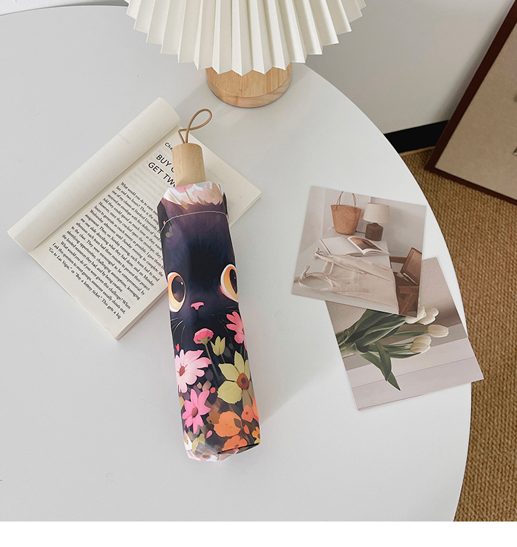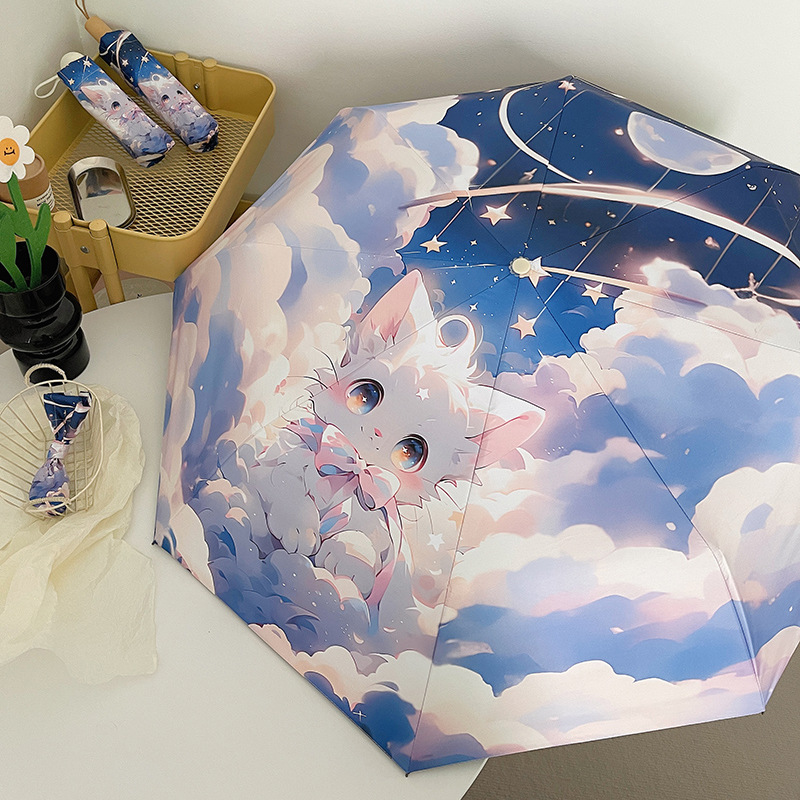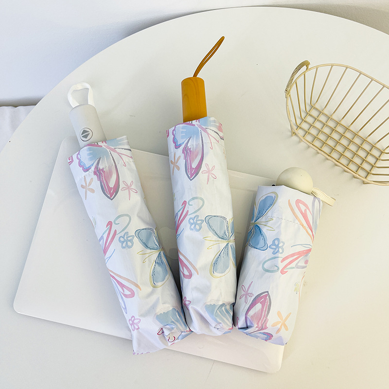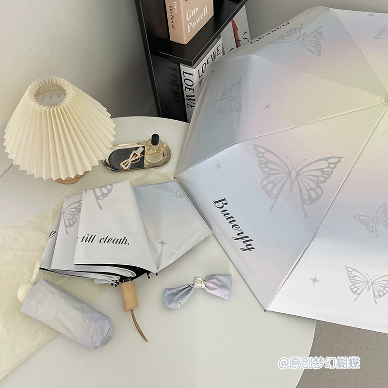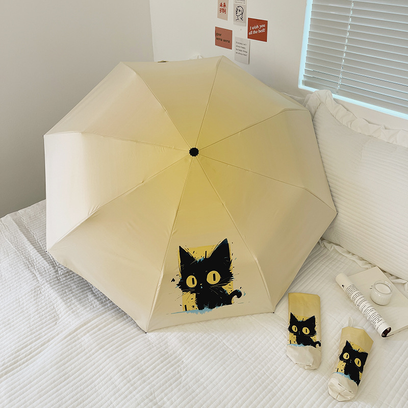 에 소녀 심장 검은 플라스틱 접이식 우산 태양 보호 자외선 보호 비 이중 사용 자동 태양 우산 휴대용 태양 우산스토어 가기