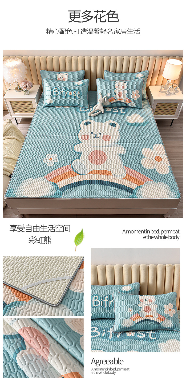 여름 아이스 실크 라텍스 여름 매트 3 피스 침대 시트 에어컨 소프트 매트 학생 기숙사 세탁 가능한 가정용 여름 매트