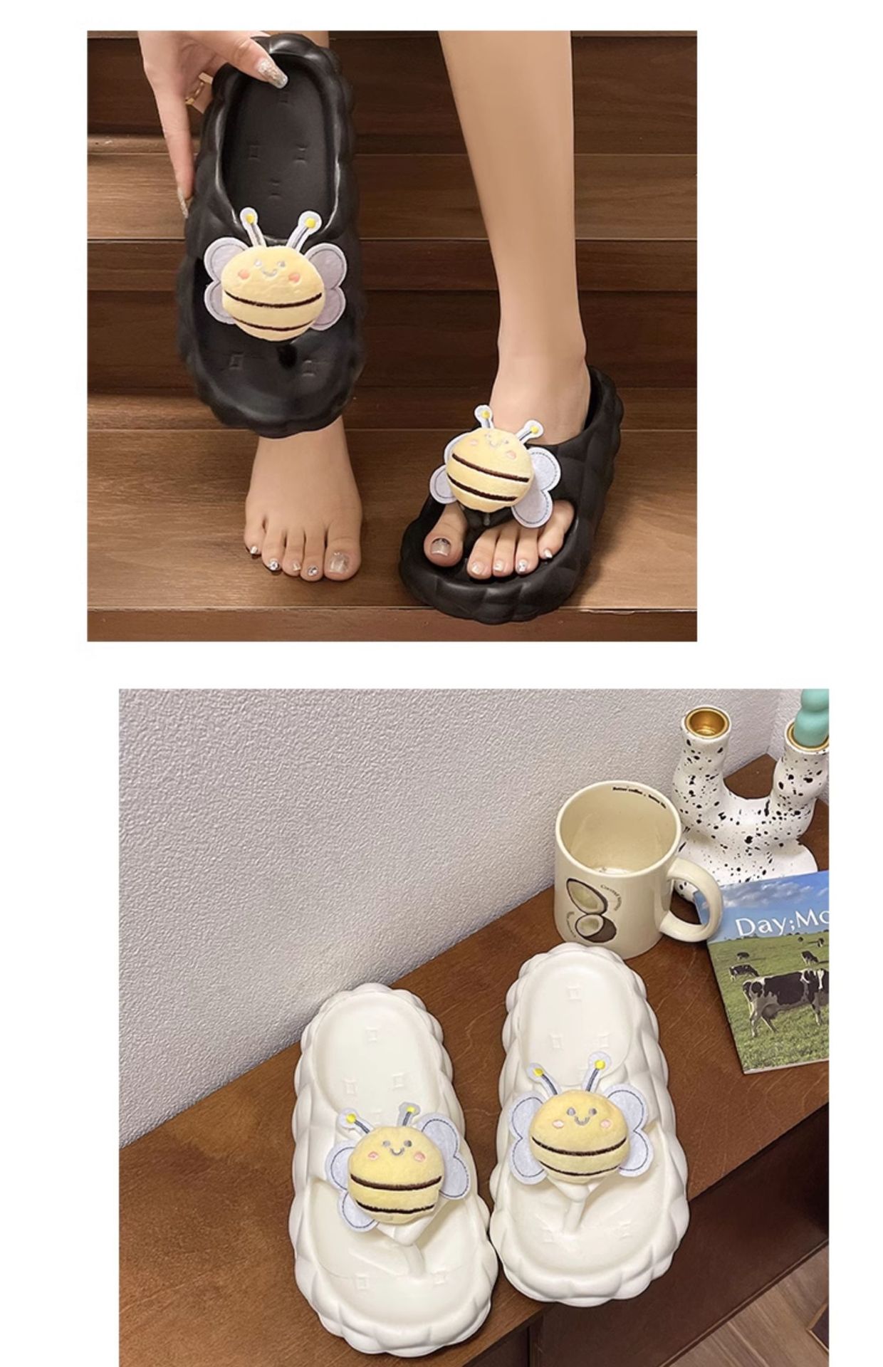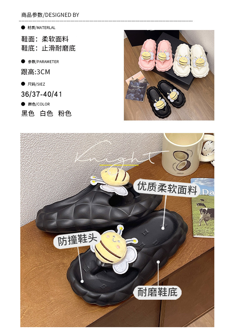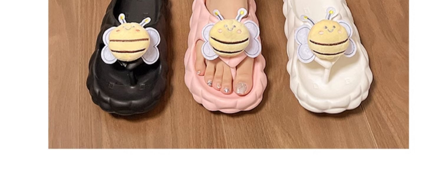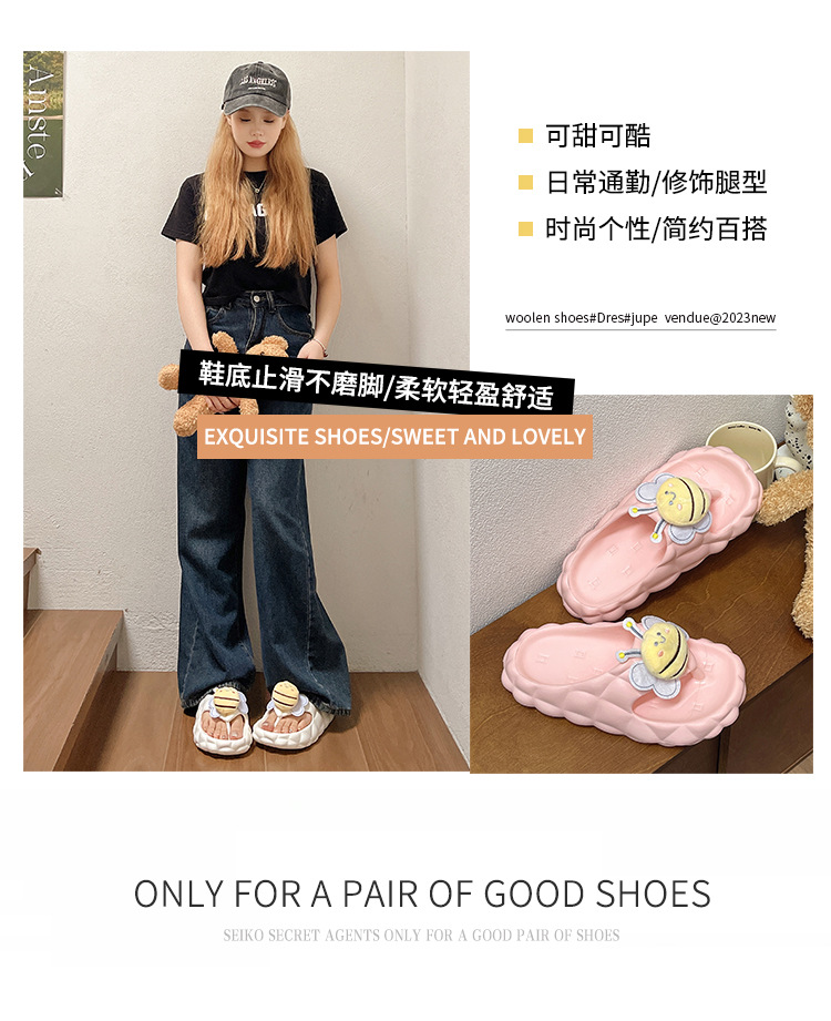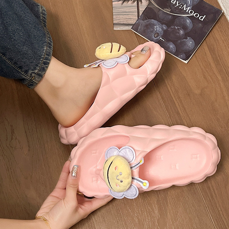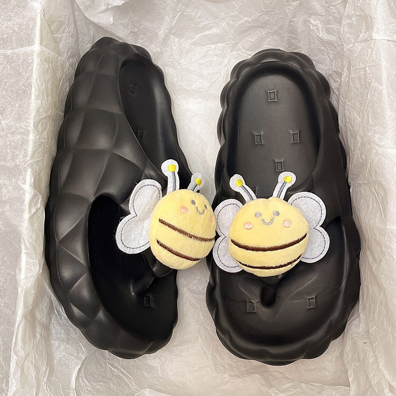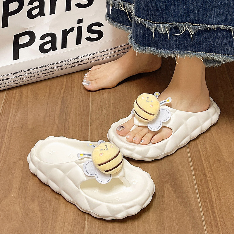 Flip-Flops 여성 여름 2024 새로운 귀여운 꿀벌 야외 착용 eva 두꺼운 바닥 똥 느낌 해변 샌들 도매스토어 가기