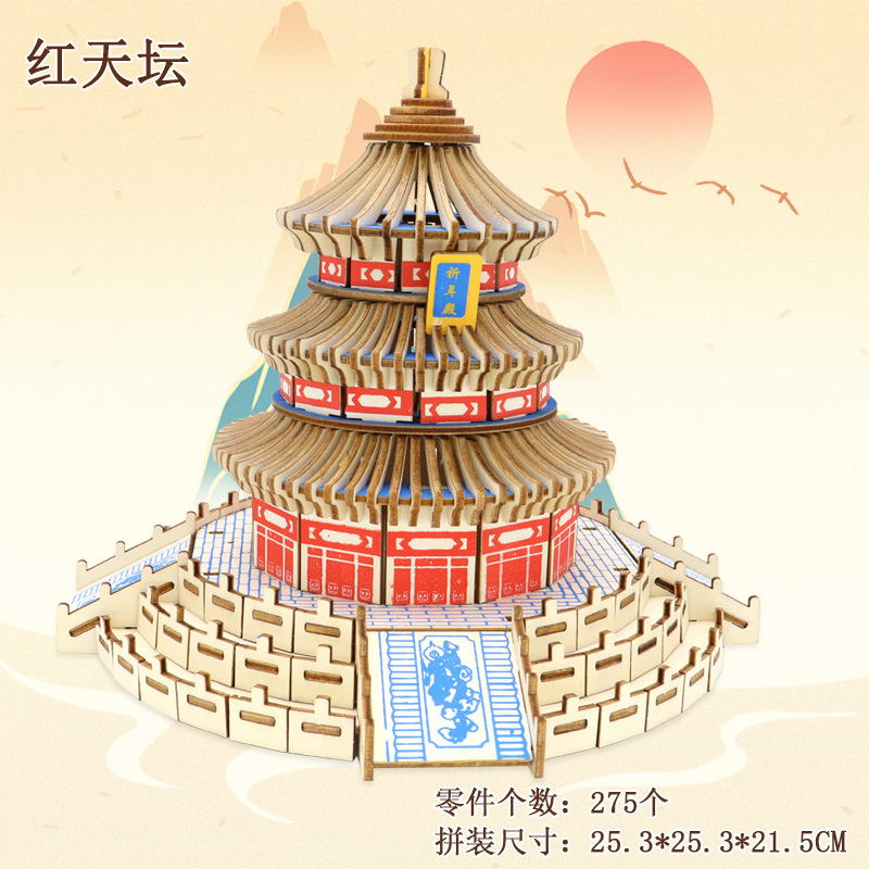 베이징 천단 나무 장난감 입체 퍼즐 건물 모델 수제 교육 빌딩 블록 diy 중국어 조립