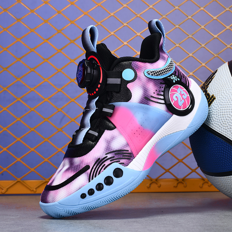 소년 버튼 농구화 어린이 통기성 전문 전투 운동화 중대형 어린이 메쉬 웨이브 신발 학생 스포츠 운동화