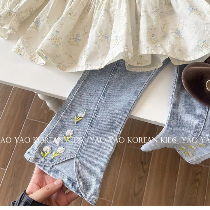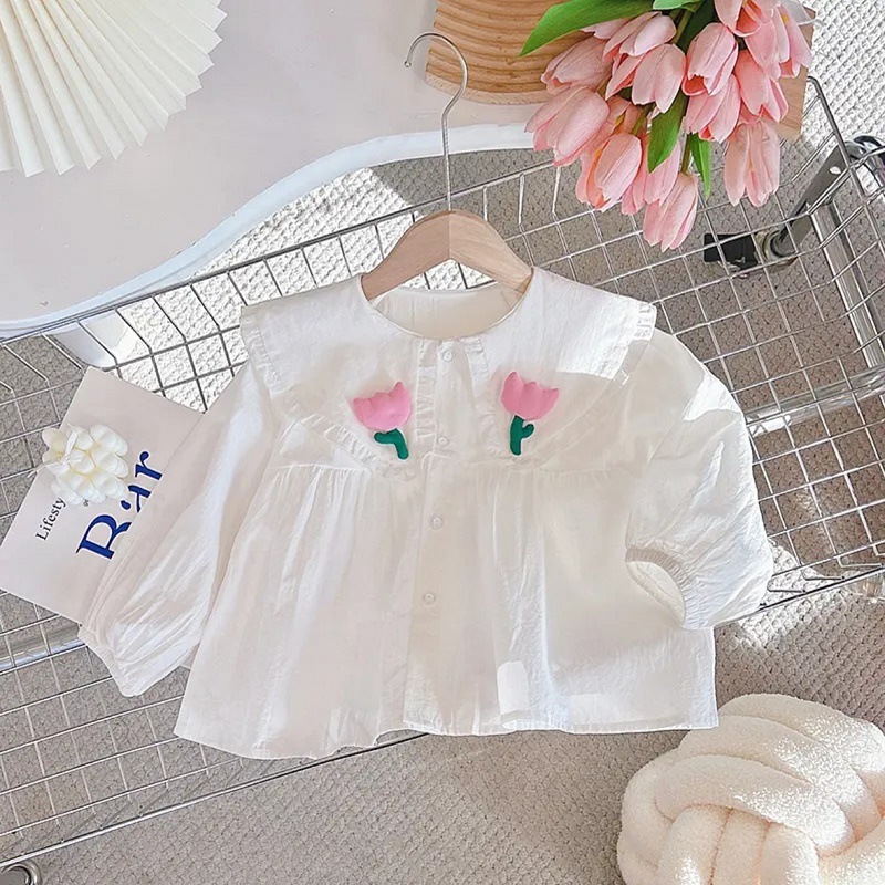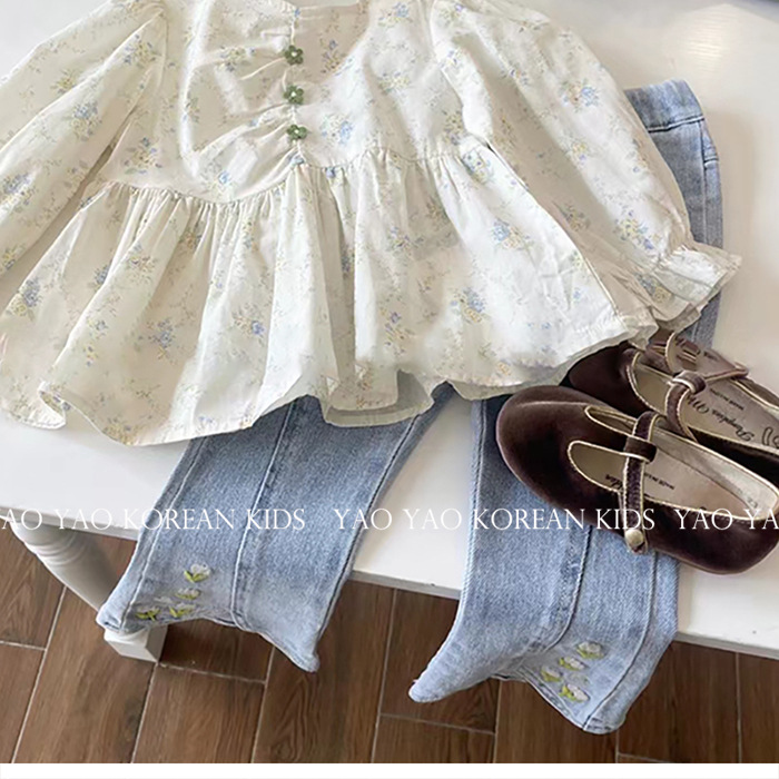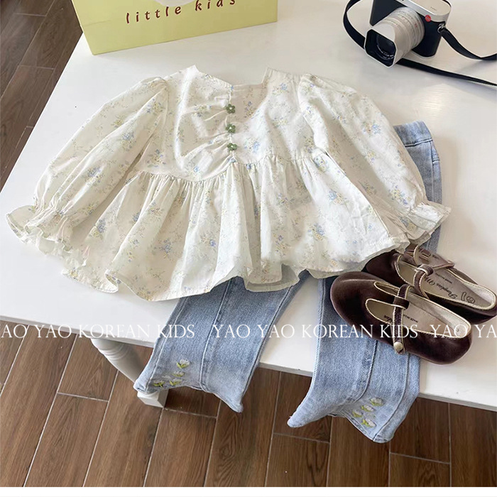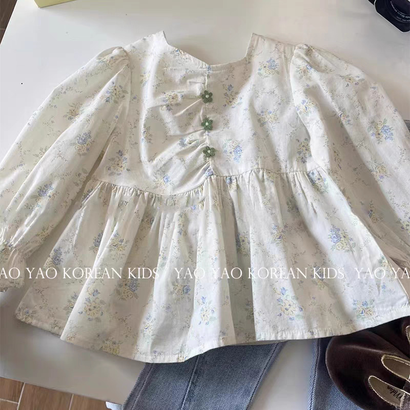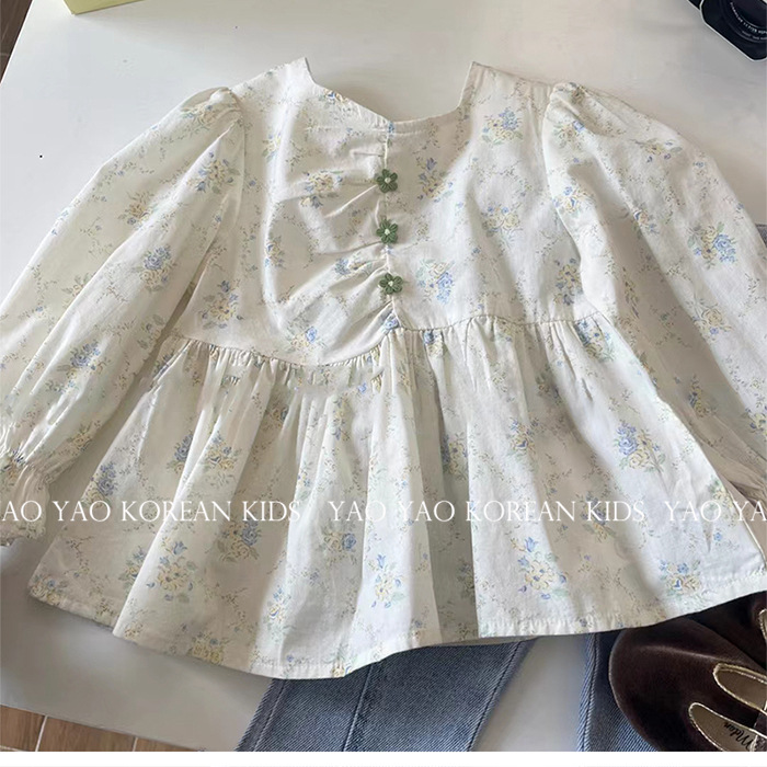 Ningli 소녀 셔츠 봄과 가을 어린 소녀를위한 새로운 서양식 느슨한 캐주얼 셔츠 한국 스타일 어린이 꽃 무늬 탑