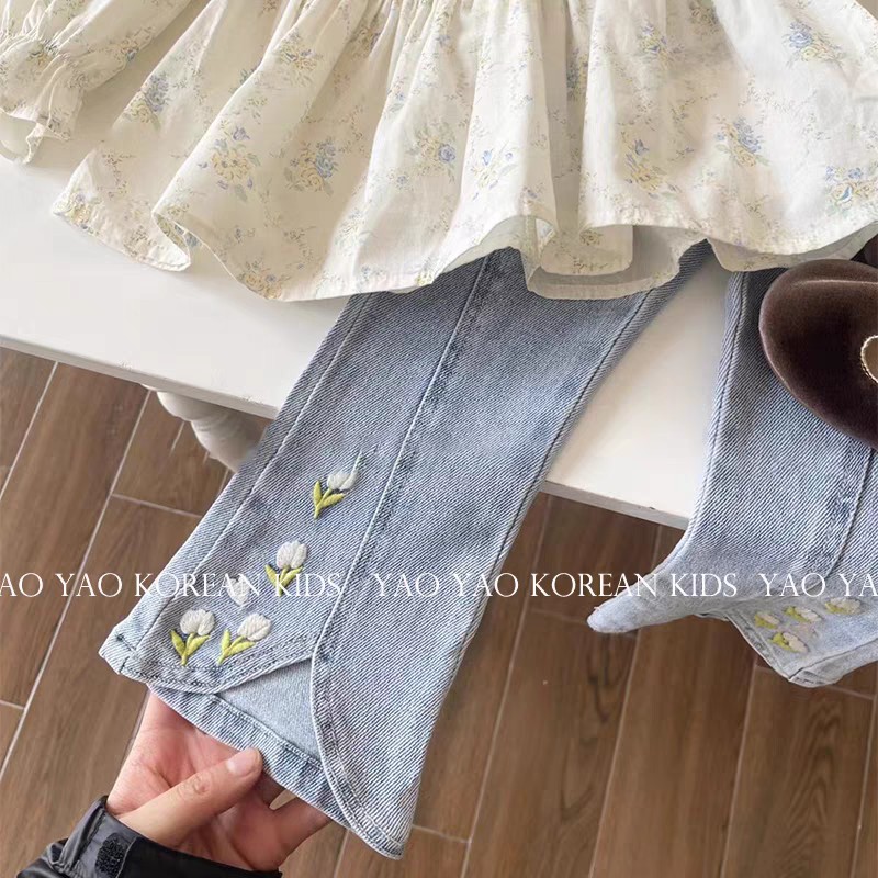 Ningli 소녀 셔츠 봄과 가을 어린 소녀를위한 새로운 서양식 느슨한 캐주얼 셔츠 한국 스타일 어린이 꽃 무늬 탑스토어 가기