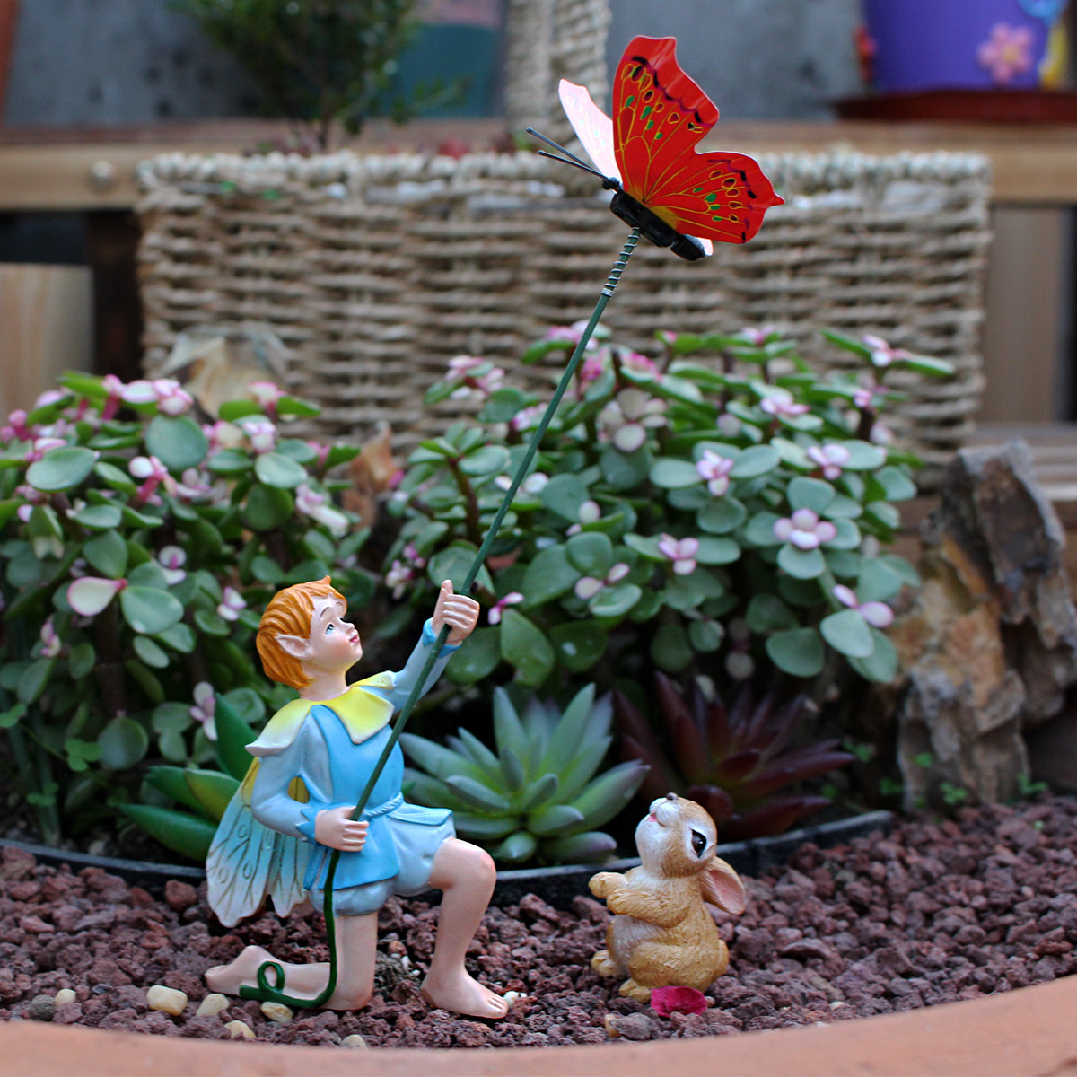 국경 간 재고 비행 연 소년 토끼 장식 창조적 인 화분에 담긴 요정 풍경 플러그인 수지 동상 공예스토어 가기