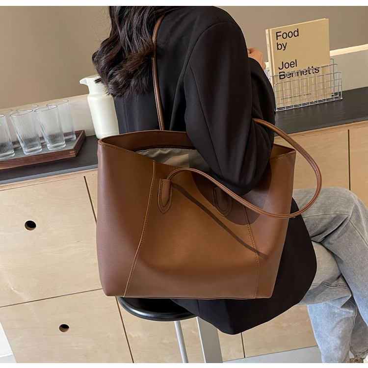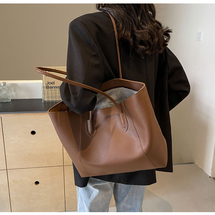 국경 간 토트 백 새로운 질감 대용량 가방 트렌디 한 숄더백 여성 패션 올 매치 겨드랑이 가방 PU 여성용 가방