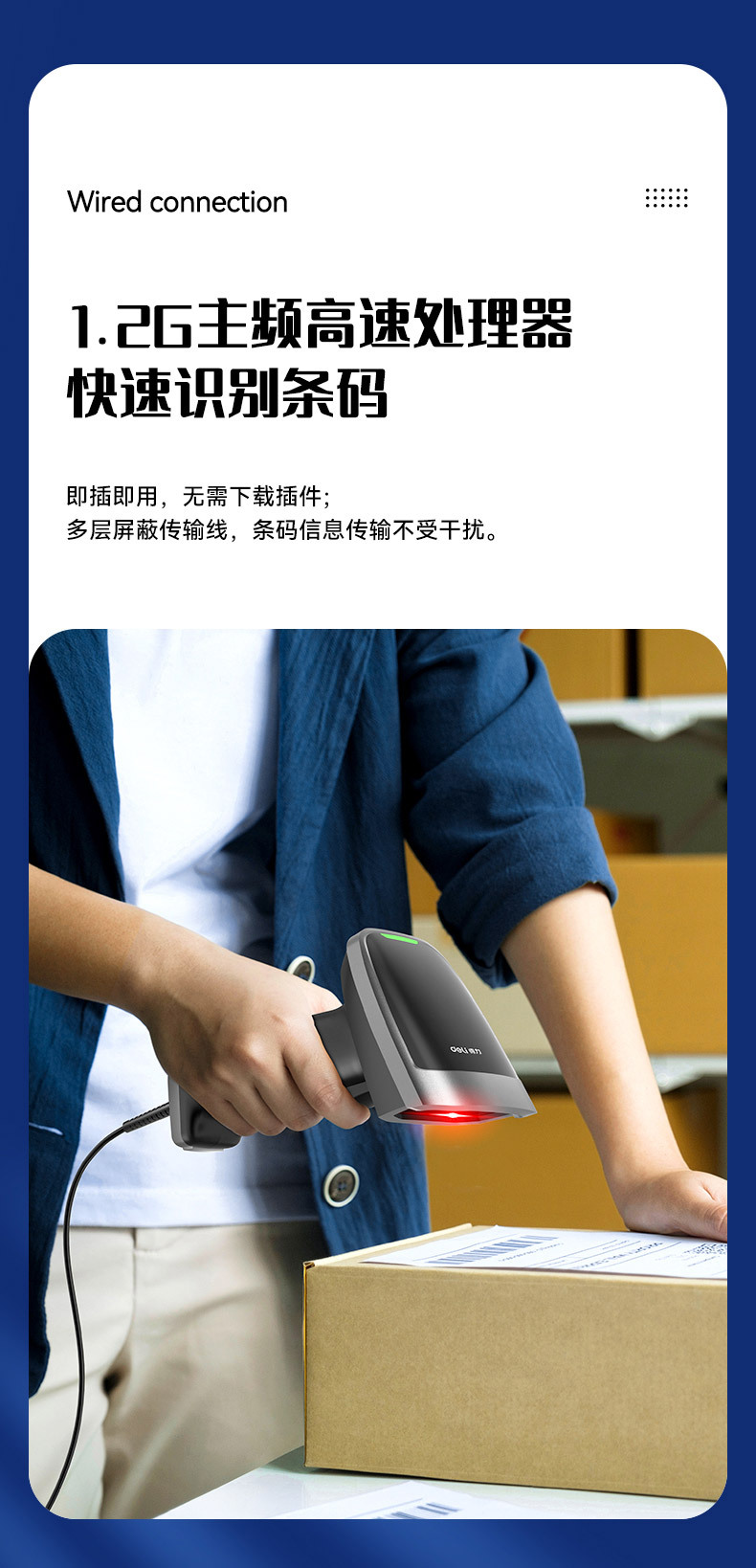 델리 AA307 스캔 총 슈퍼마켓 특수 계산원 1 QR 코드 지불 코드 창고 익스프레스 바코드 스캐너스토어 가기