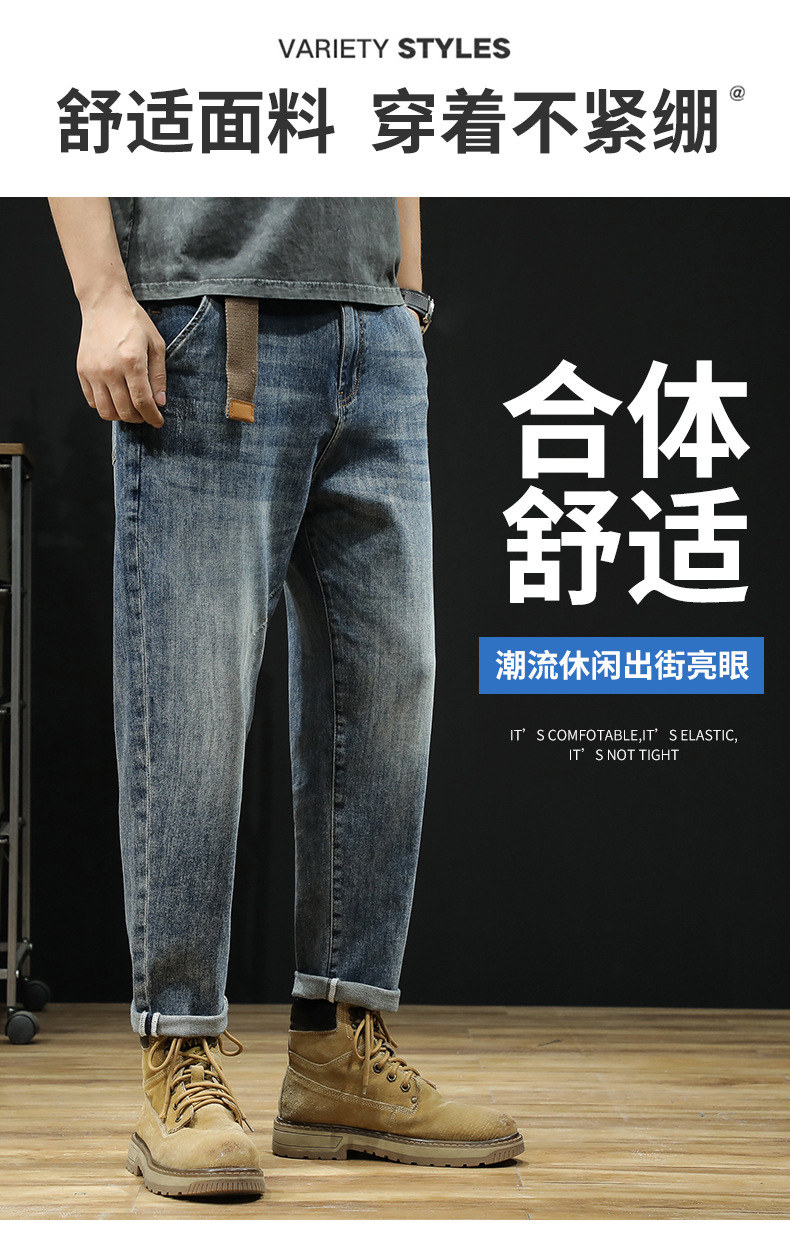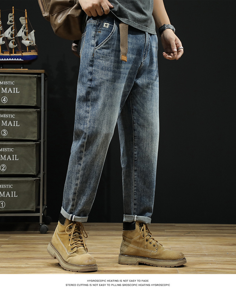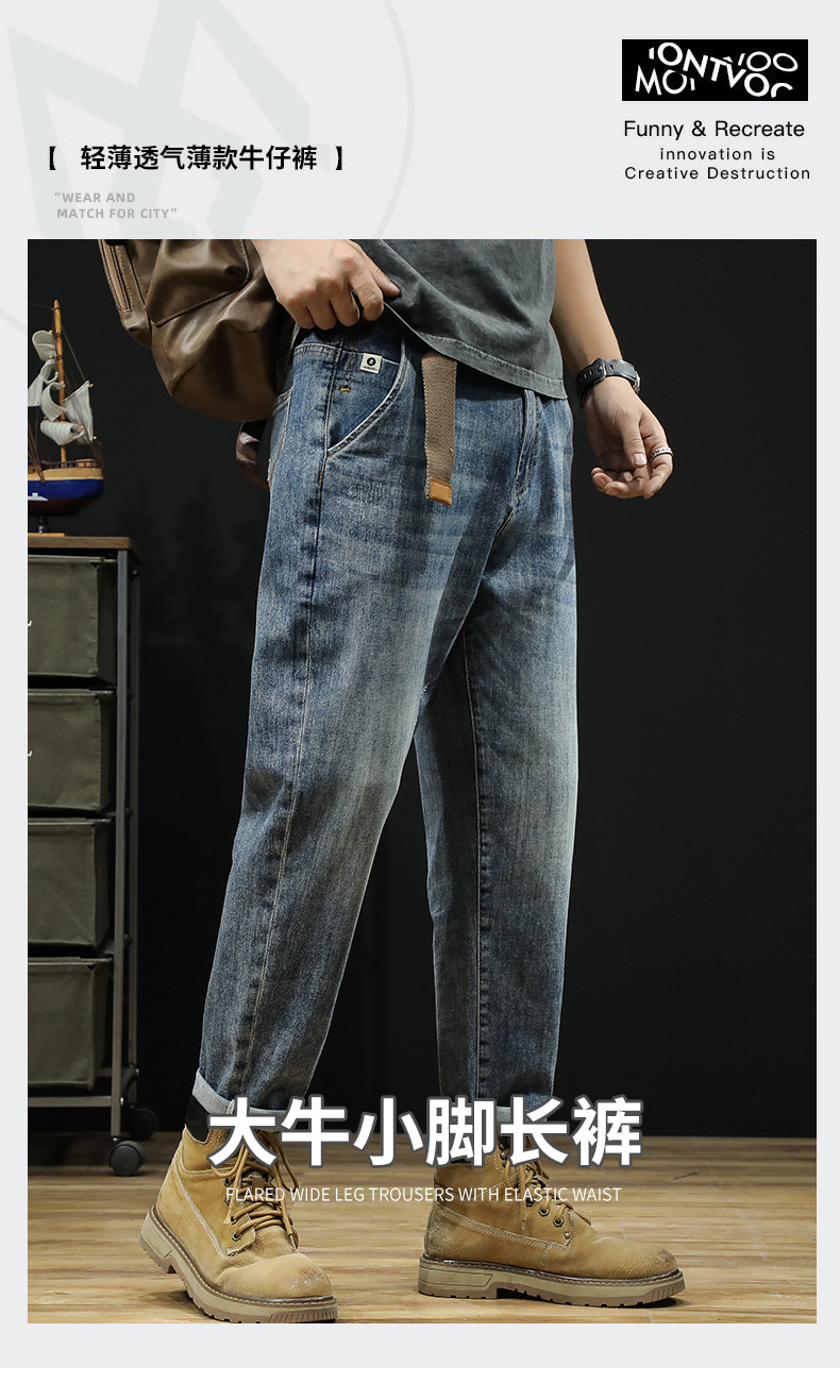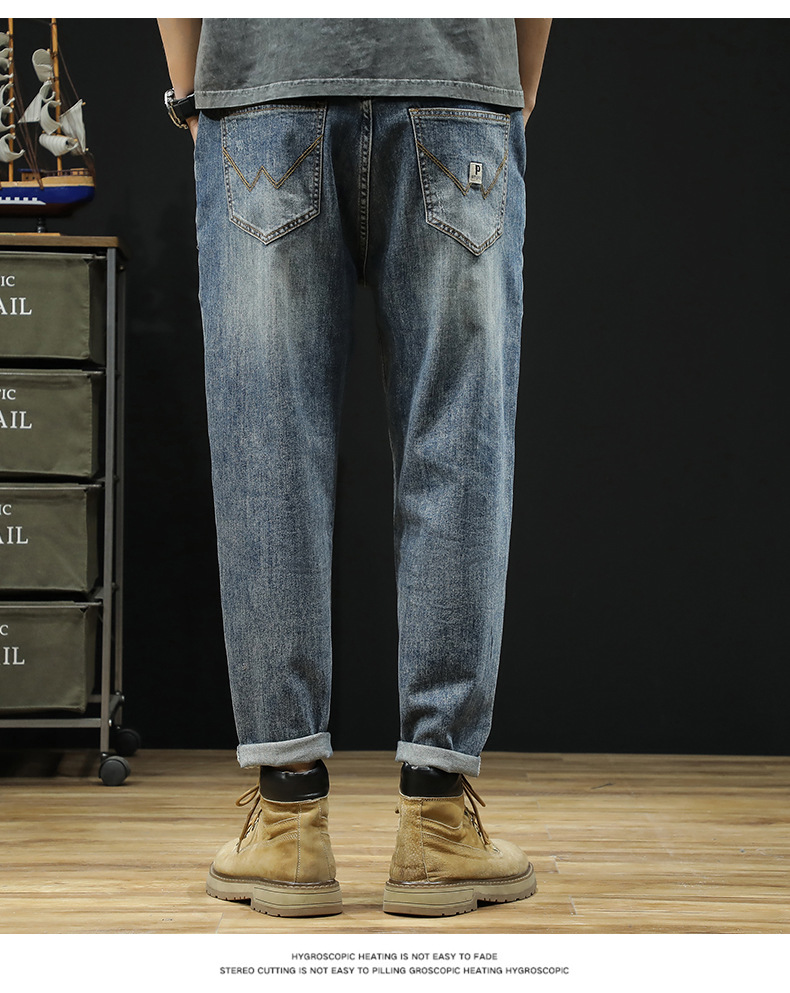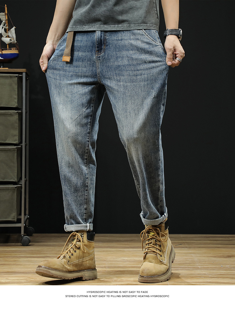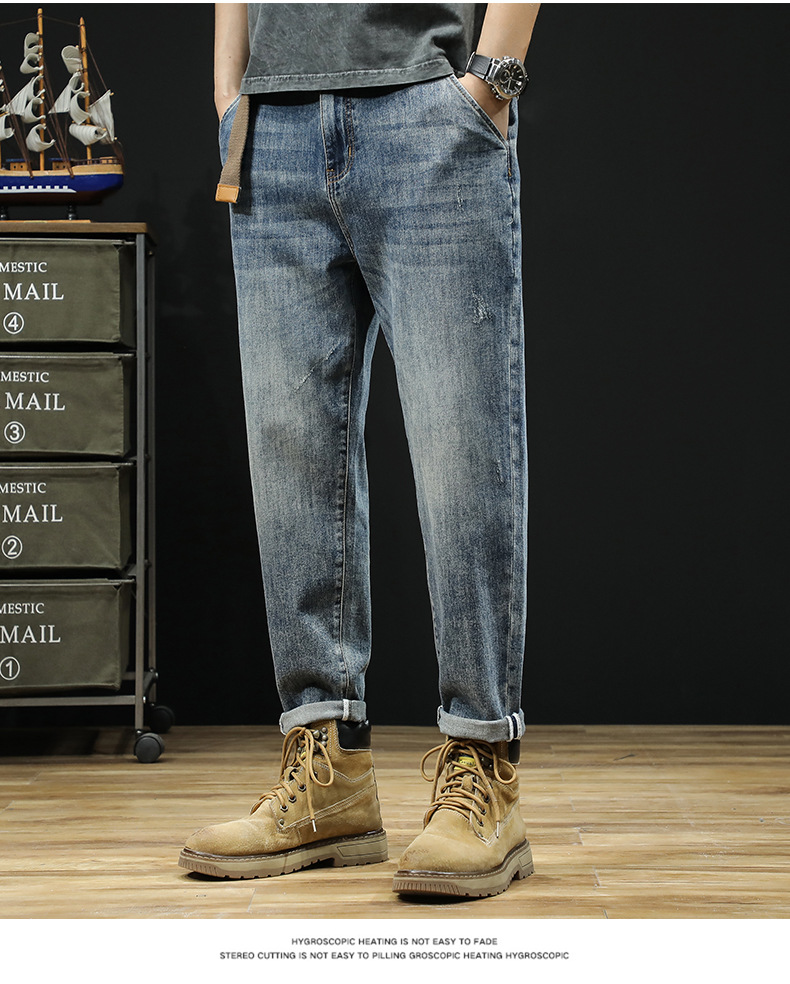 7308 # 플러스 사이즈 남성 봄과 여름 새로운 헤비 듀티 세탁 청바지 느슨한 스트레치 올 매치 얇은 스키니 바지