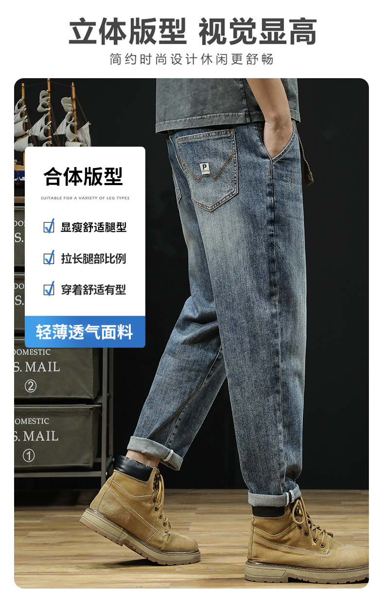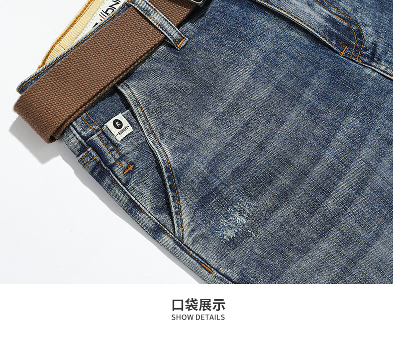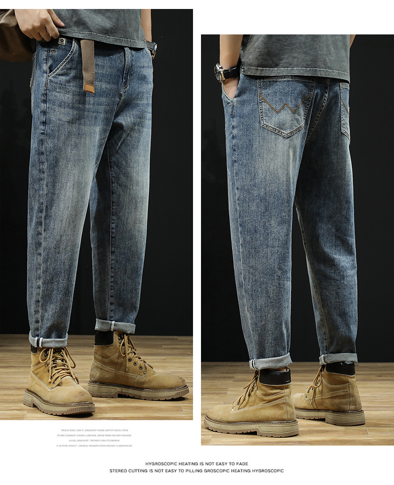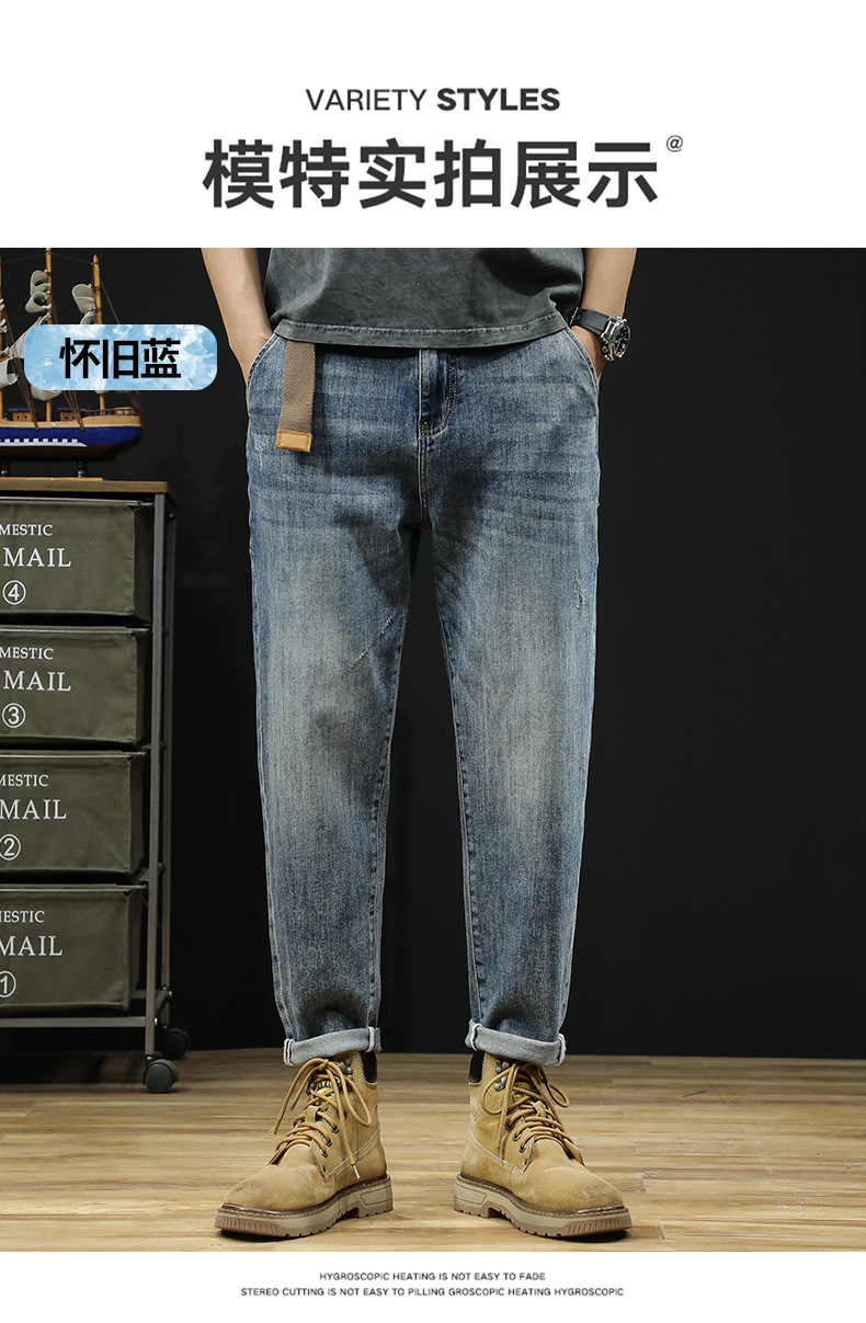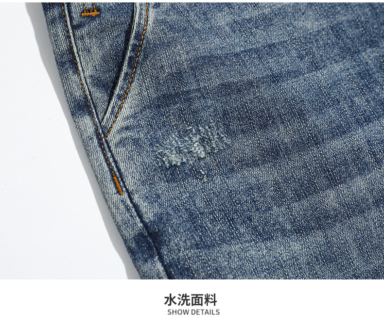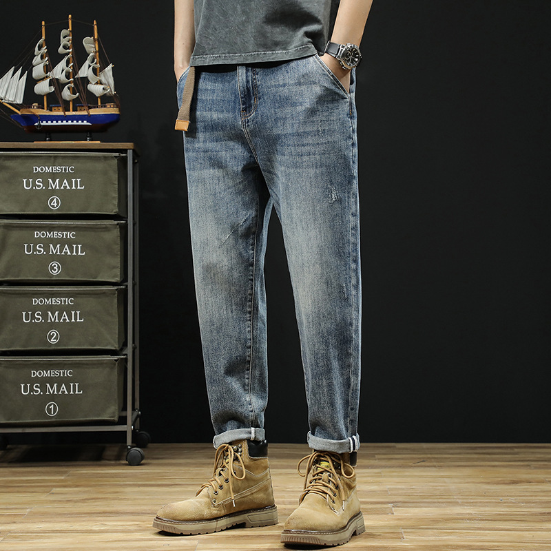 7308 # 플러스 사이즈 남성 봄과 여름 새로운 헤비 듀티 세탁 청바지 느슨한 스트레치 올 매치 얇은 스키니 바지스토어 가기