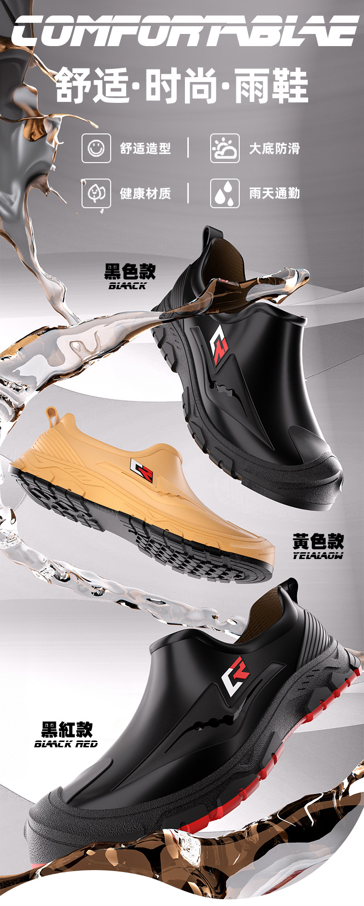 남성용 새로운 스타일의 짧은 장화, 남성용 세련되고 내마모성 낚시 워터 슈즈, 벨벳 고무 신발, 방수 장화 수출