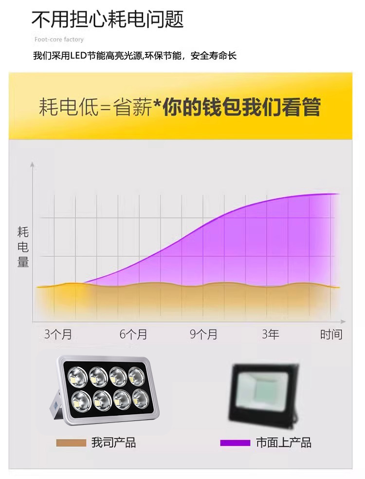 LED 스포트라이트 높은 전원 야외 방수 광장 범람등 강한 빛 슈퍼 밝은 경기장 높은 극 빛 사이트 범람등