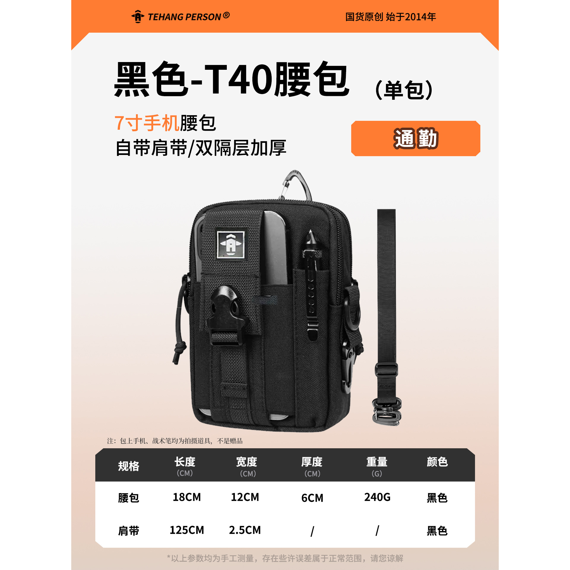 남성용 벨트 허리 가방 다기능 원 숄더 대각선 작업 현장 발수 도구 가방 7inch 휴대 전화 가방 경량스토어 가기