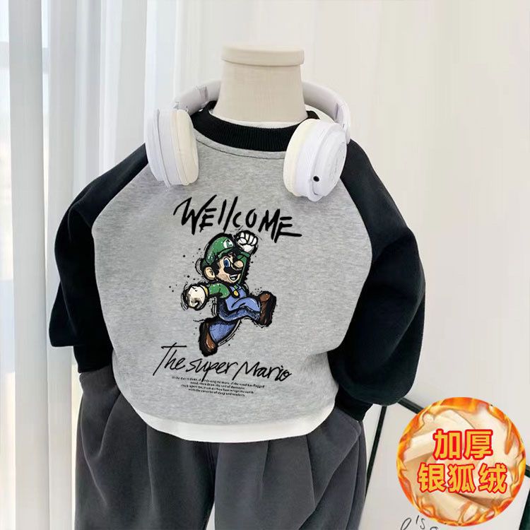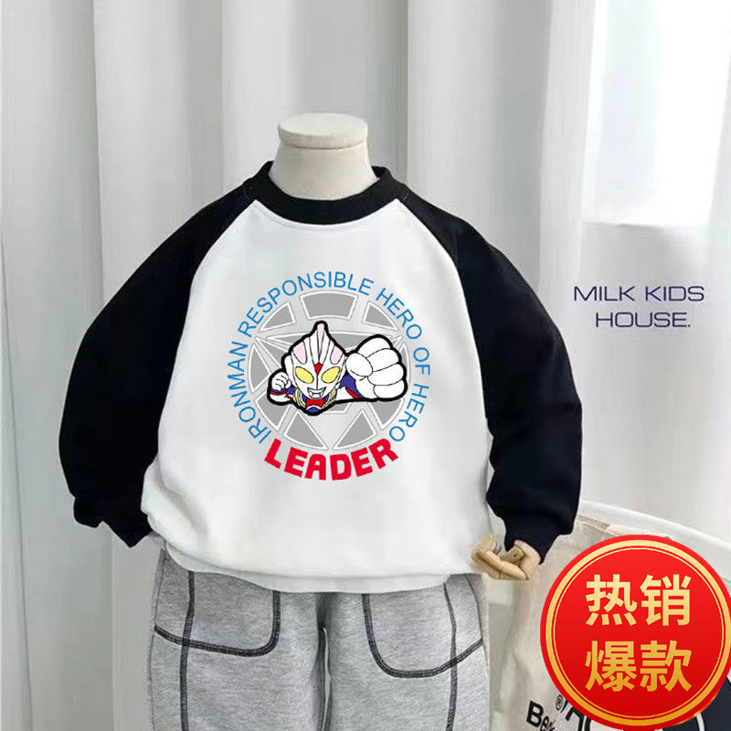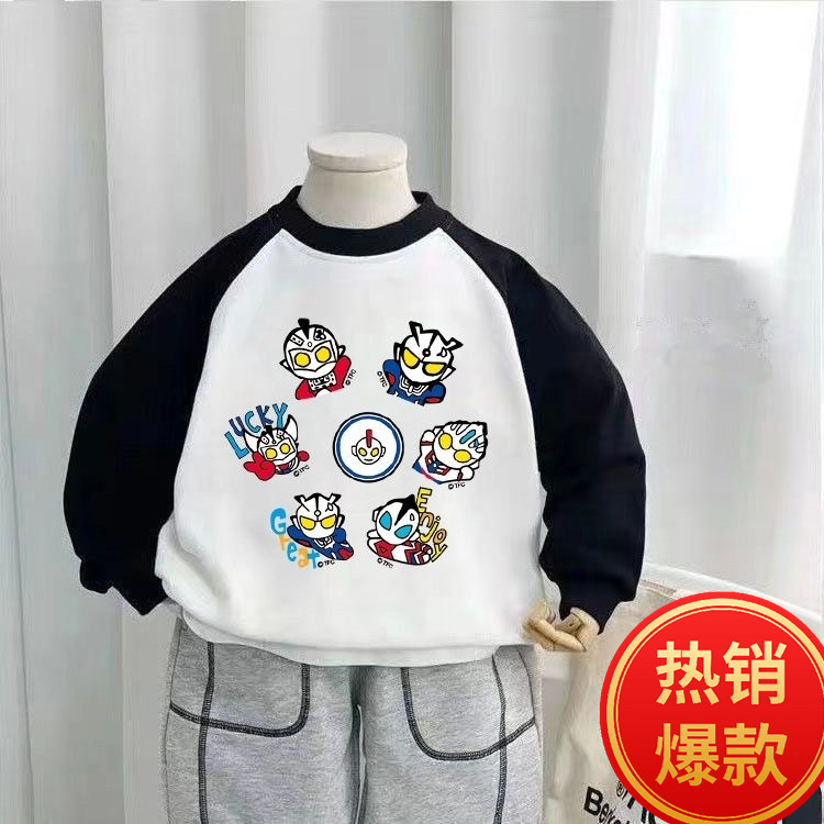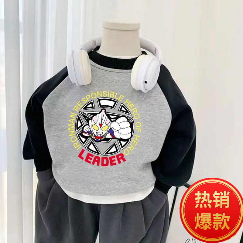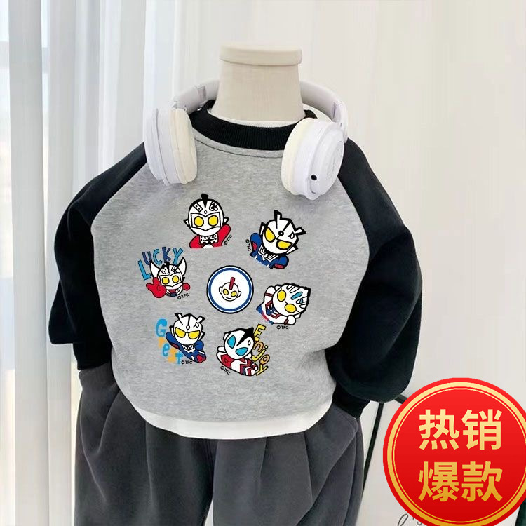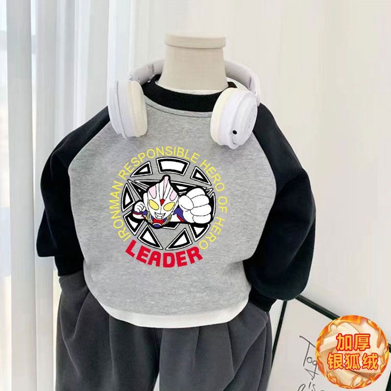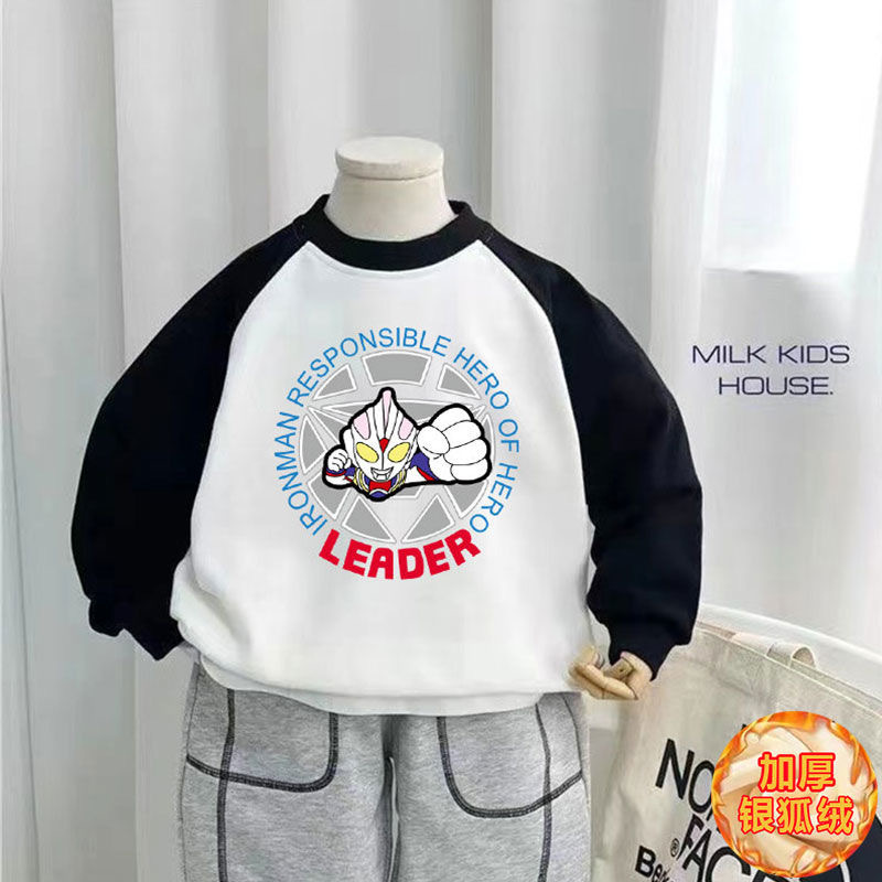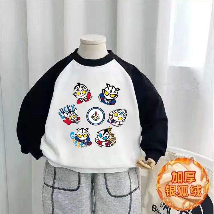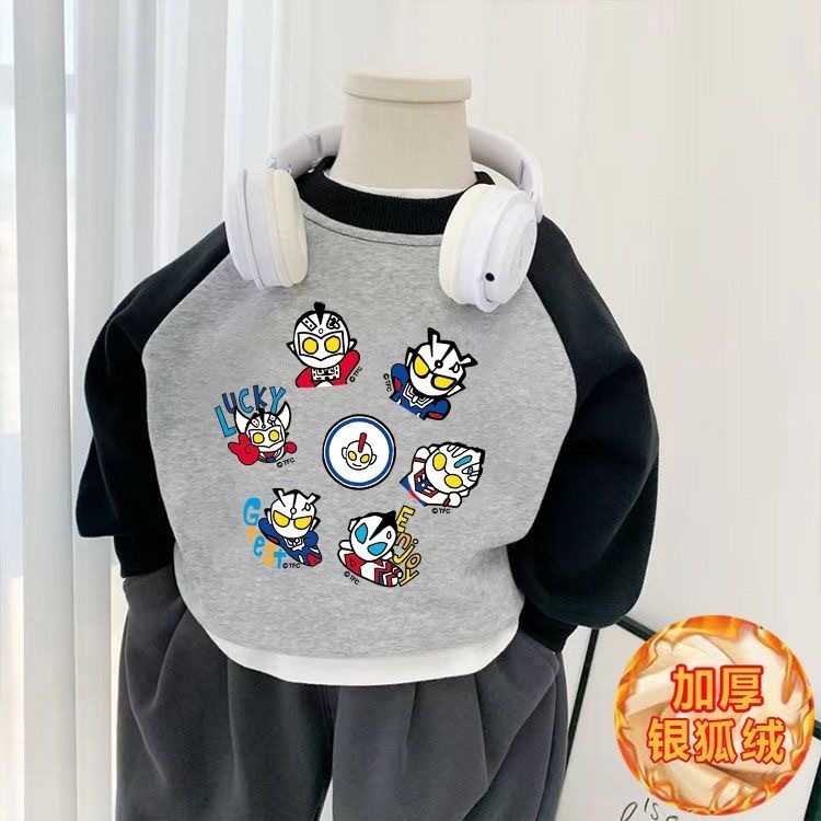 남학생과 소녀의 가을과 겨울 스웨터 대비 컬러 어린이 올매치 울트라 맨 멋진 만화 패션 기모 두꺼운 스웨터 패션스토어 가기
