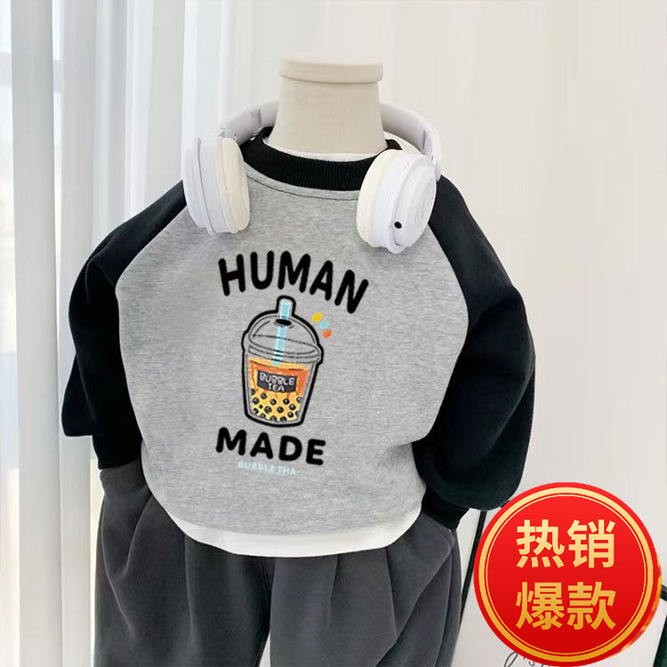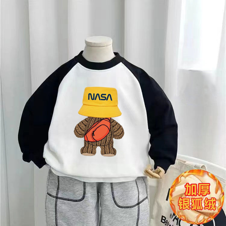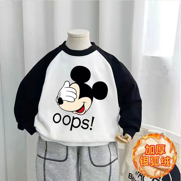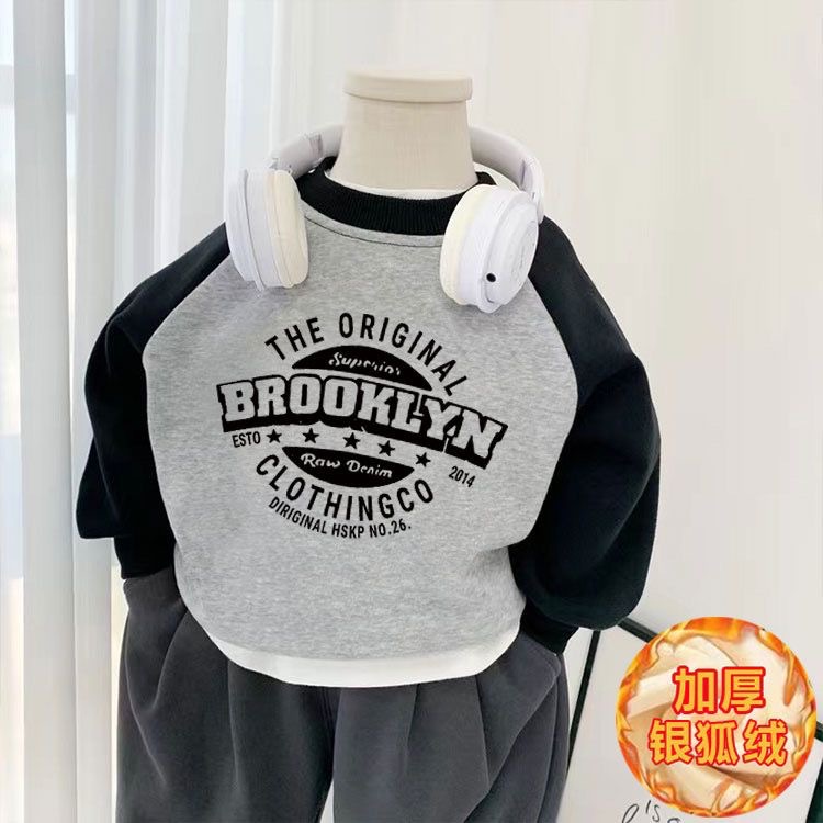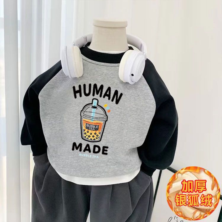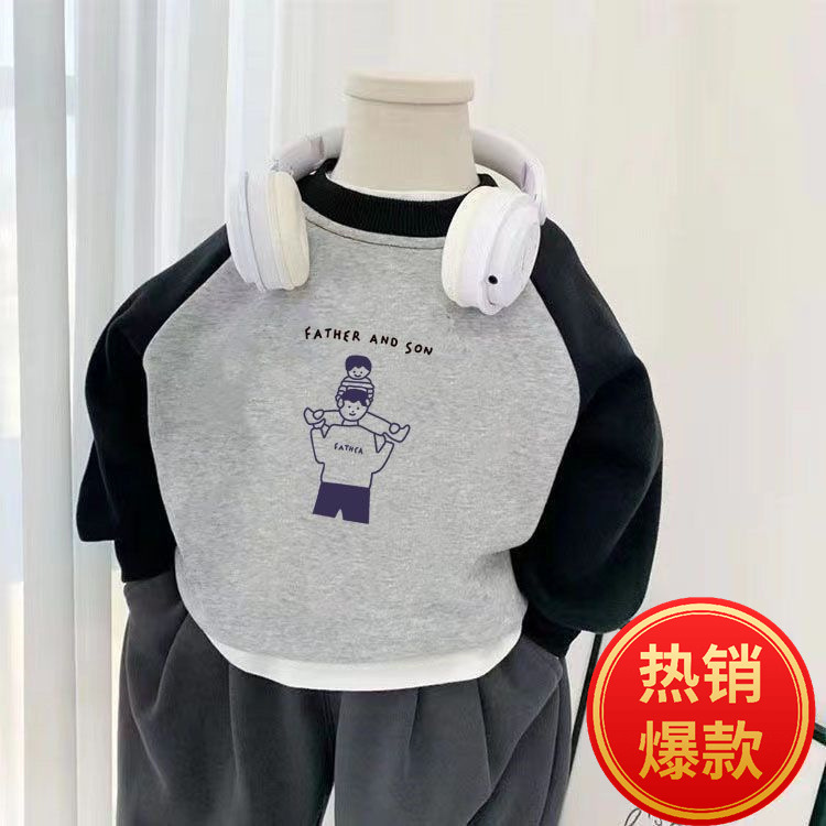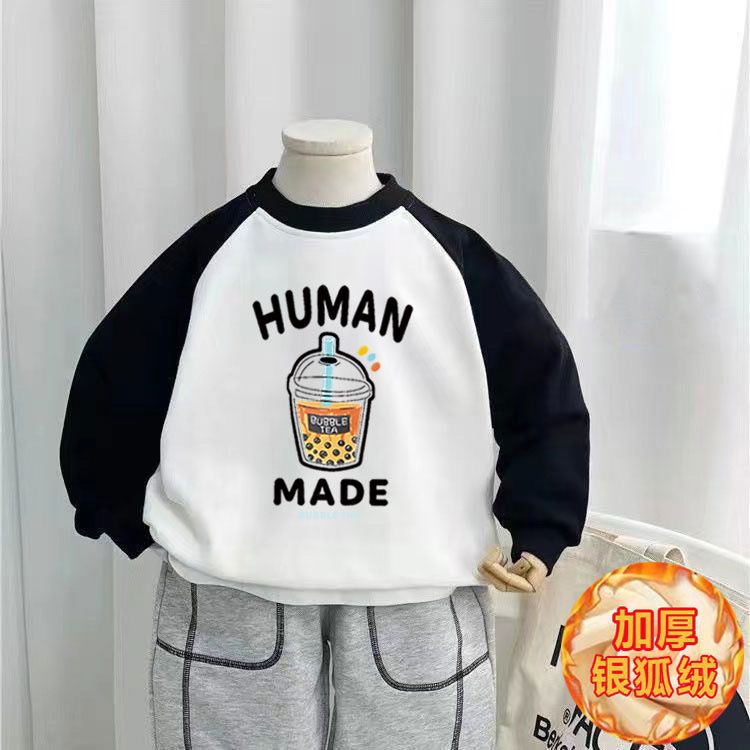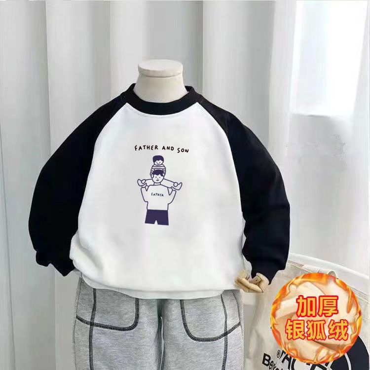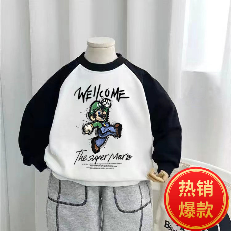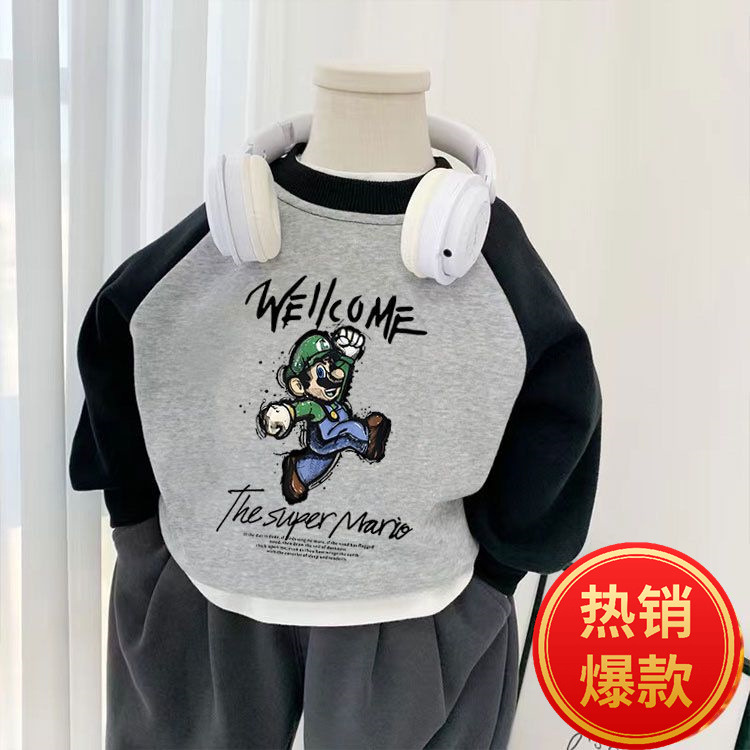 남학생과 소녀의 가을과 겨울 스웨터 대비 컬러 어린이 올매치 울트라 맨 멋진 만화 패션 기모 두꺼운 스웨터 패션스토어 가기