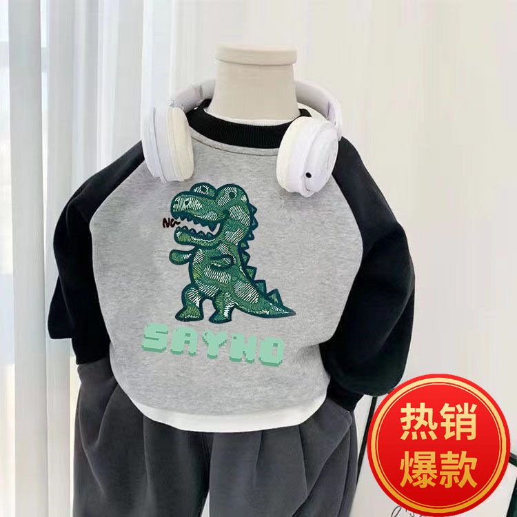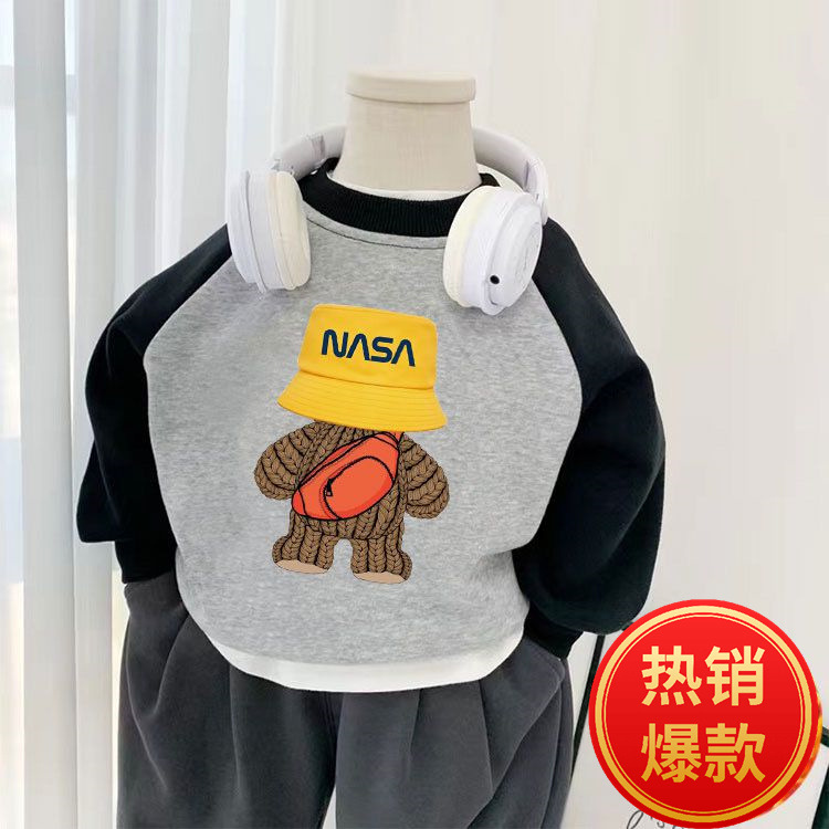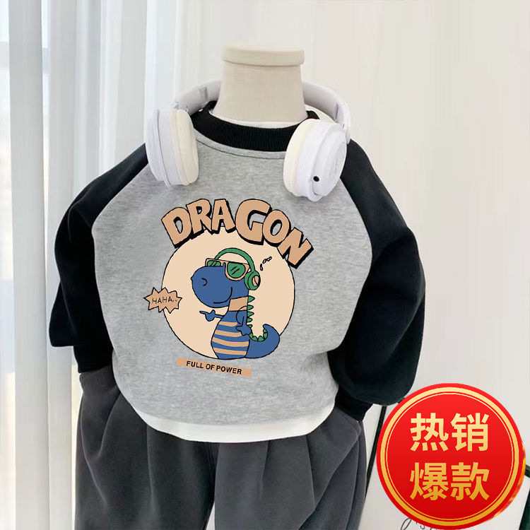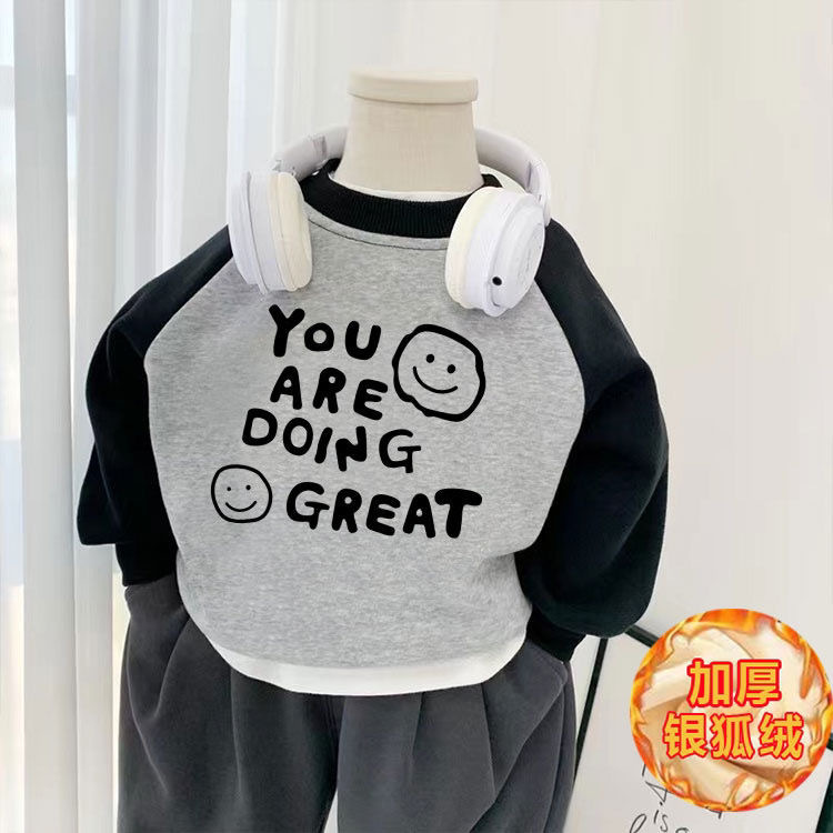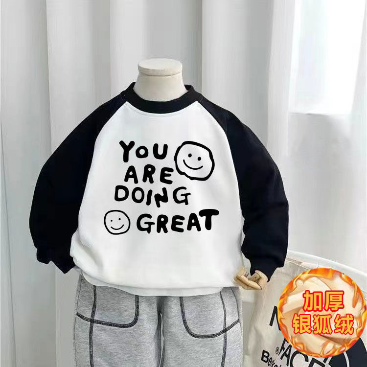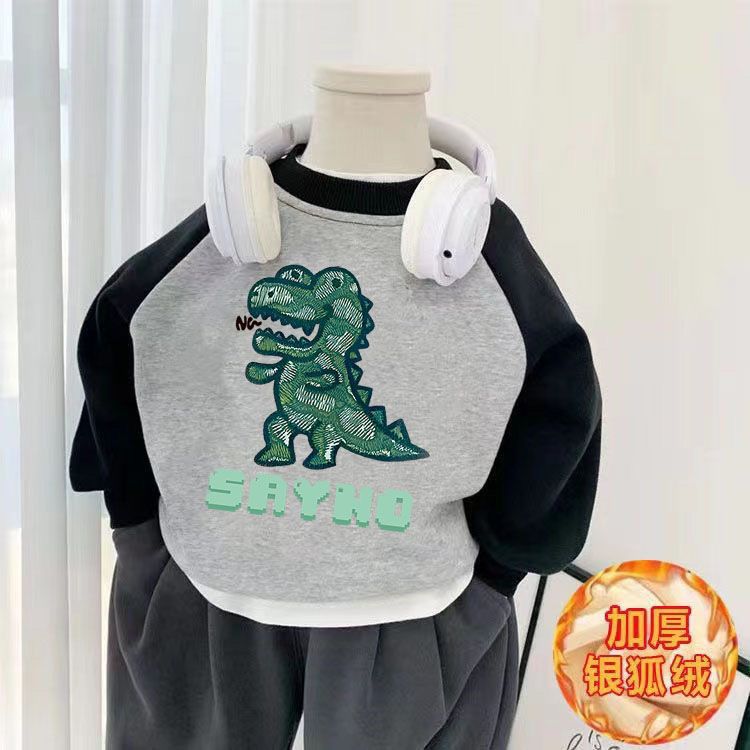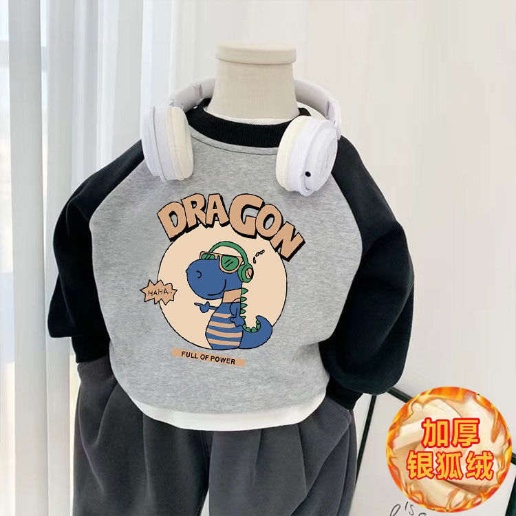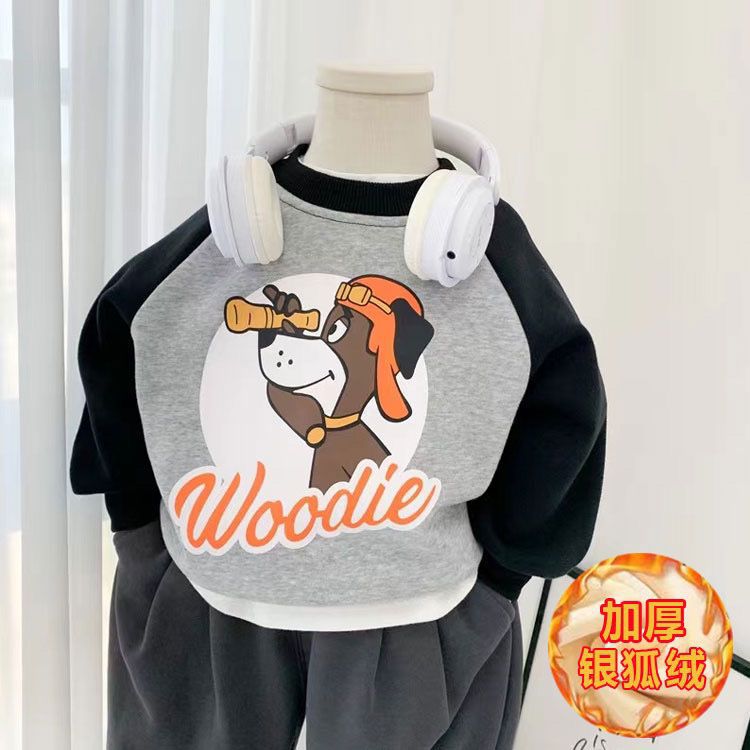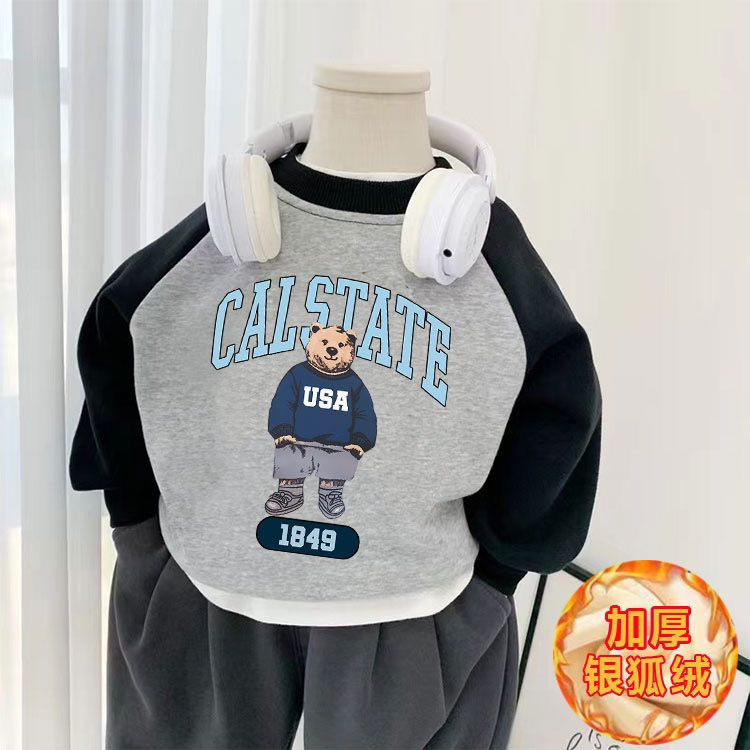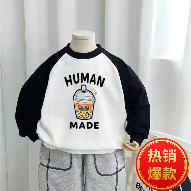 남학생과 소녀의 가을과 겨울 스웨터 대비 컬러 어린이 올매치 울트라 맨 멋진 만화 패션 기모 두꺼운 스웨터 패션스토어 가기