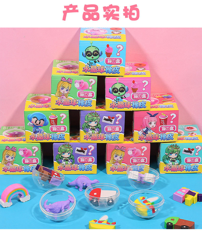 만화 계란 지우개 블라인드 박스 크리스탈 볼 지우개 유치원 선물 상 어린이 상자 장난감 선물 상자