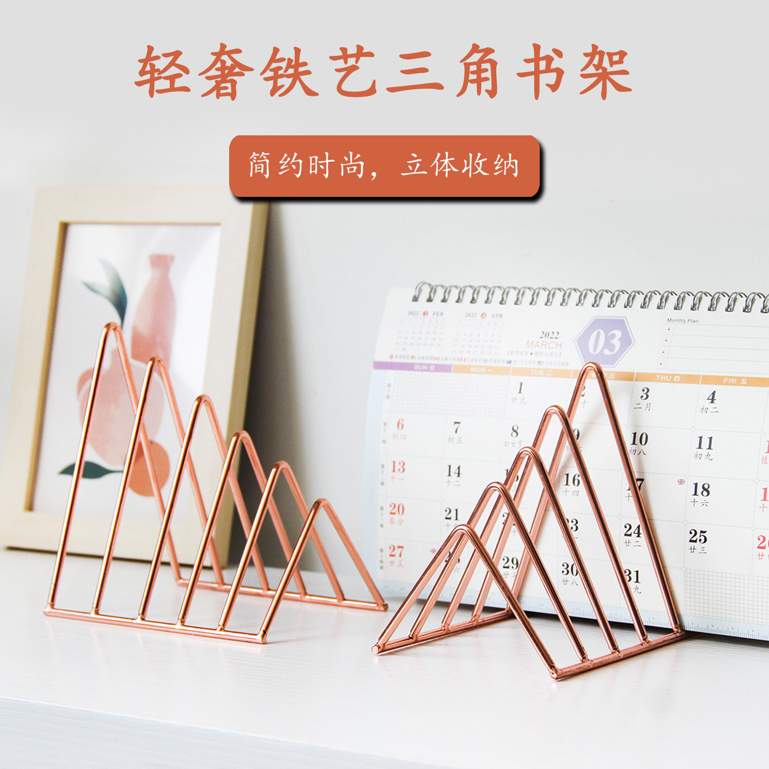 창조적 인 데스크탑 저장 랙 학생 삼각형 책상 보관 사무실 책장 금속 책 스탠드 보관 랙 장식품