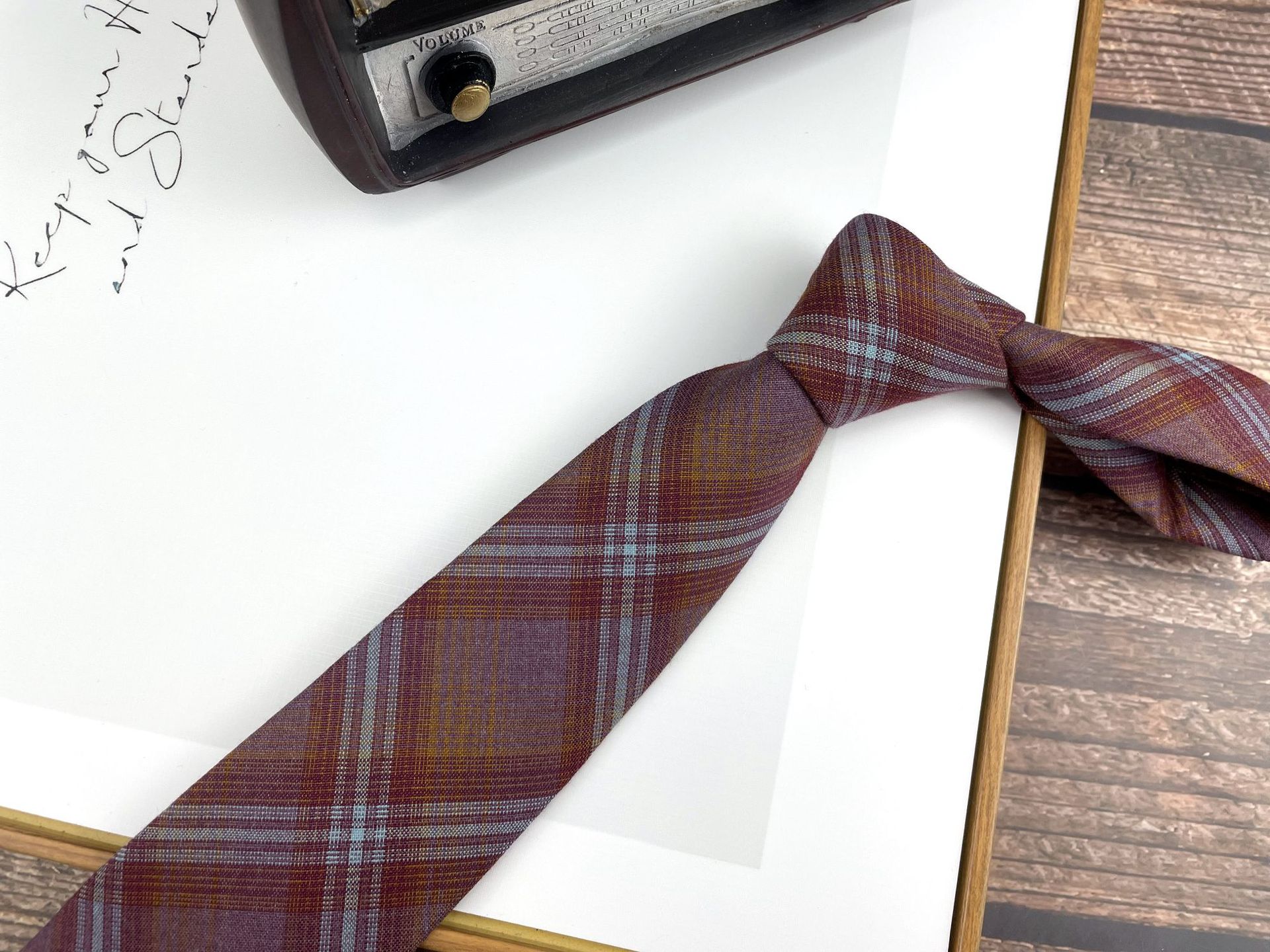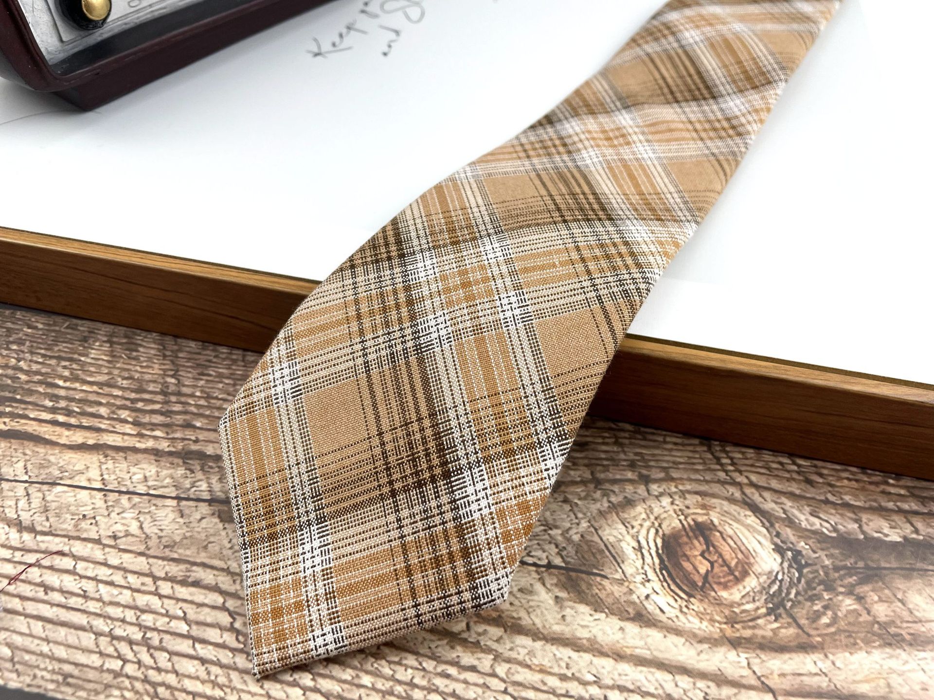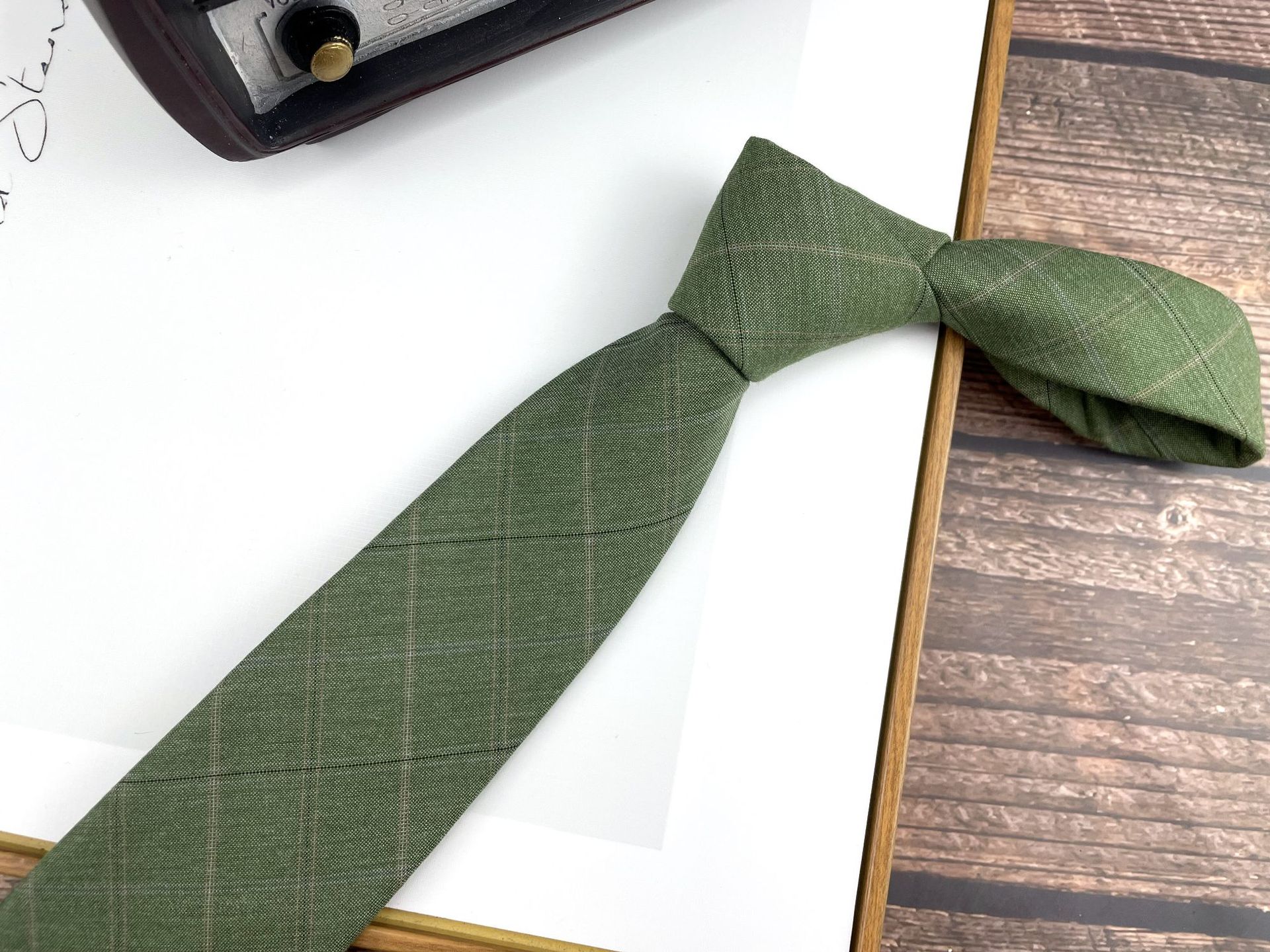• 2 번 카키 격자 무늬 손 넥타이