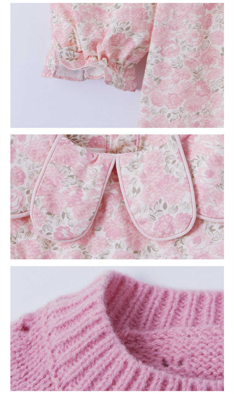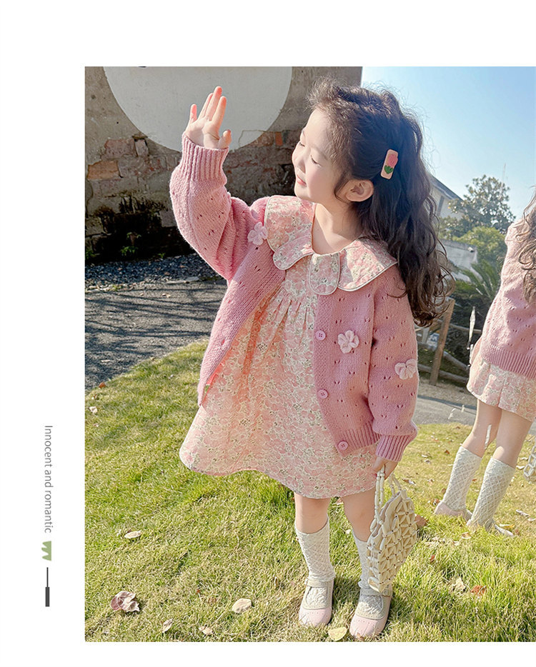 여자 꽃 드레스 세트 여름 새로운 어린이 니트 카디건 스웨터 아기 소녀 가을 투피스 유행 세트