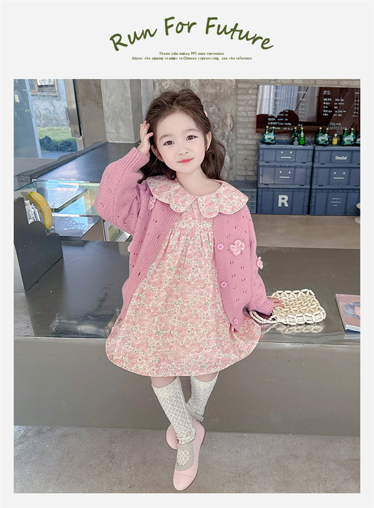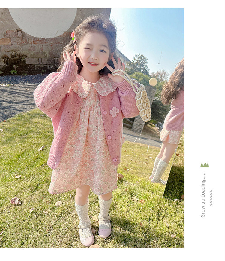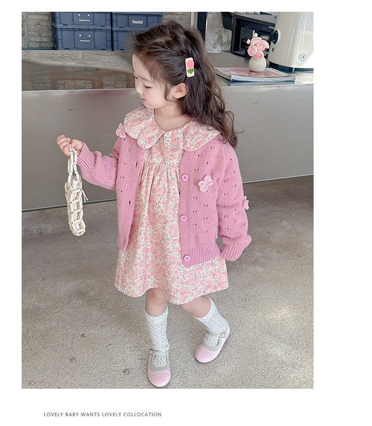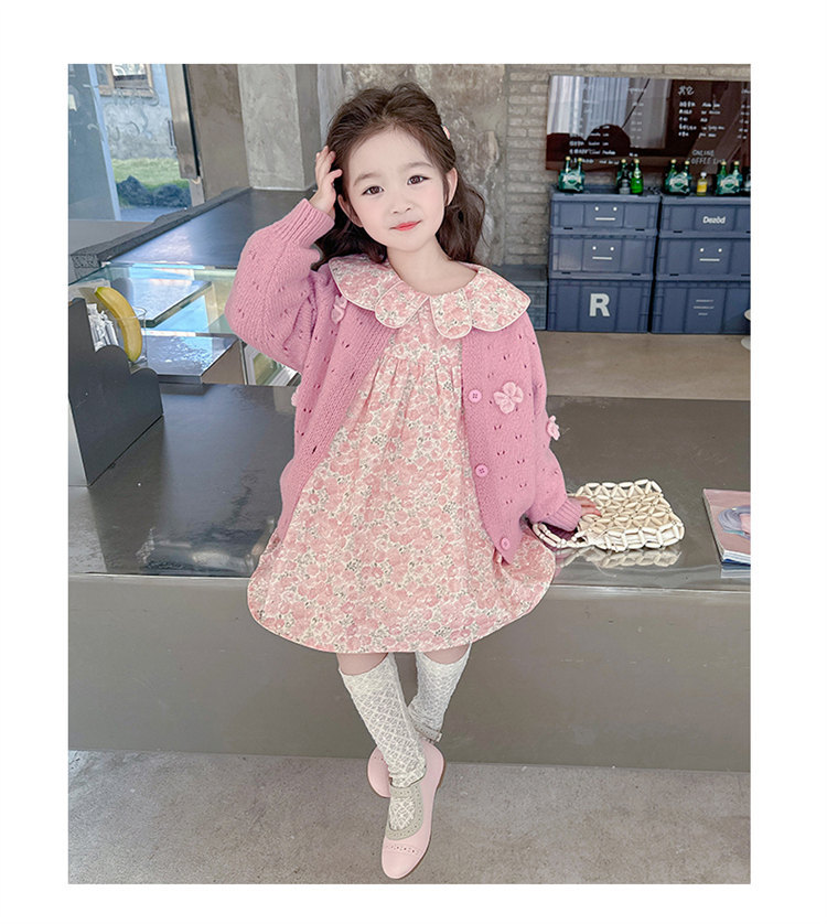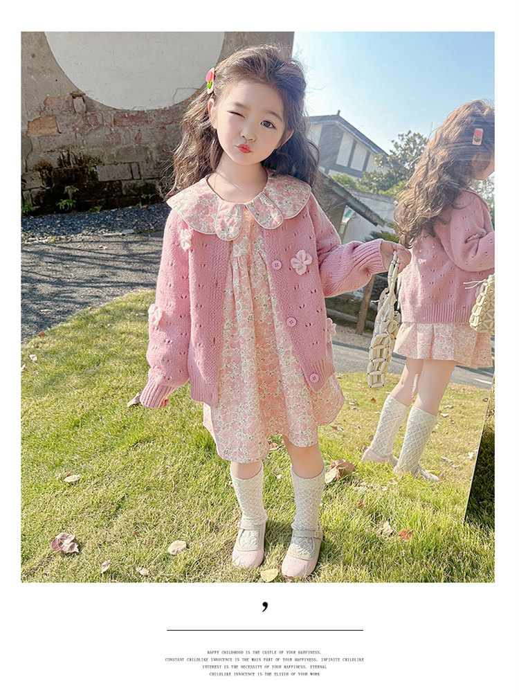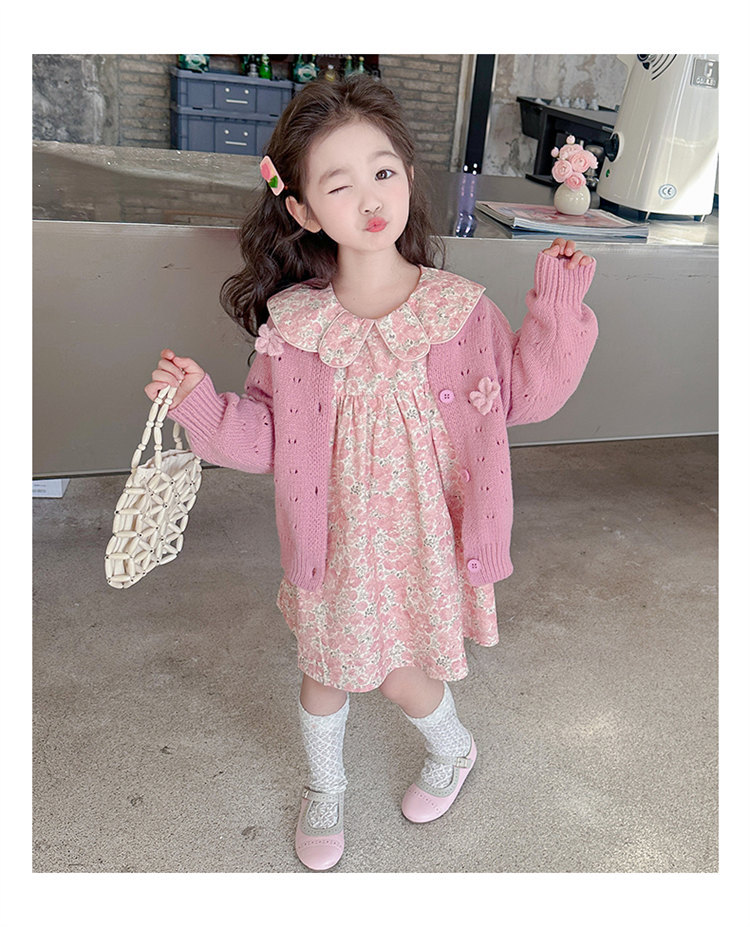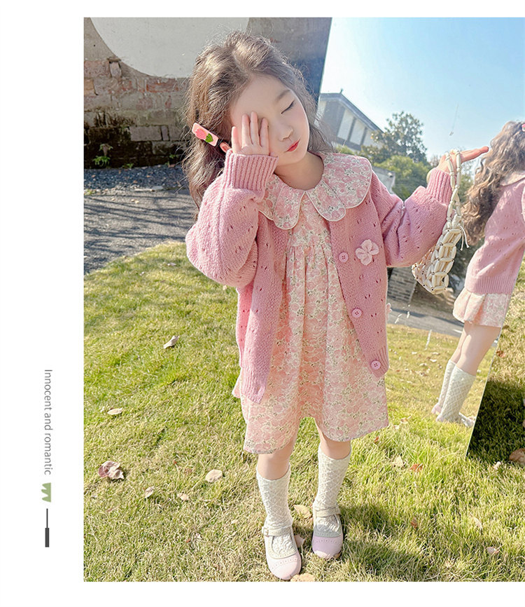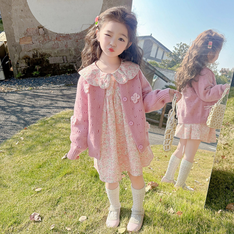 여자 꽃 드레스 세트 여름 새로운 어린이 니트 카디건 스웨터 아기 소녀 가을 투피스 유행 세트스토어 가기