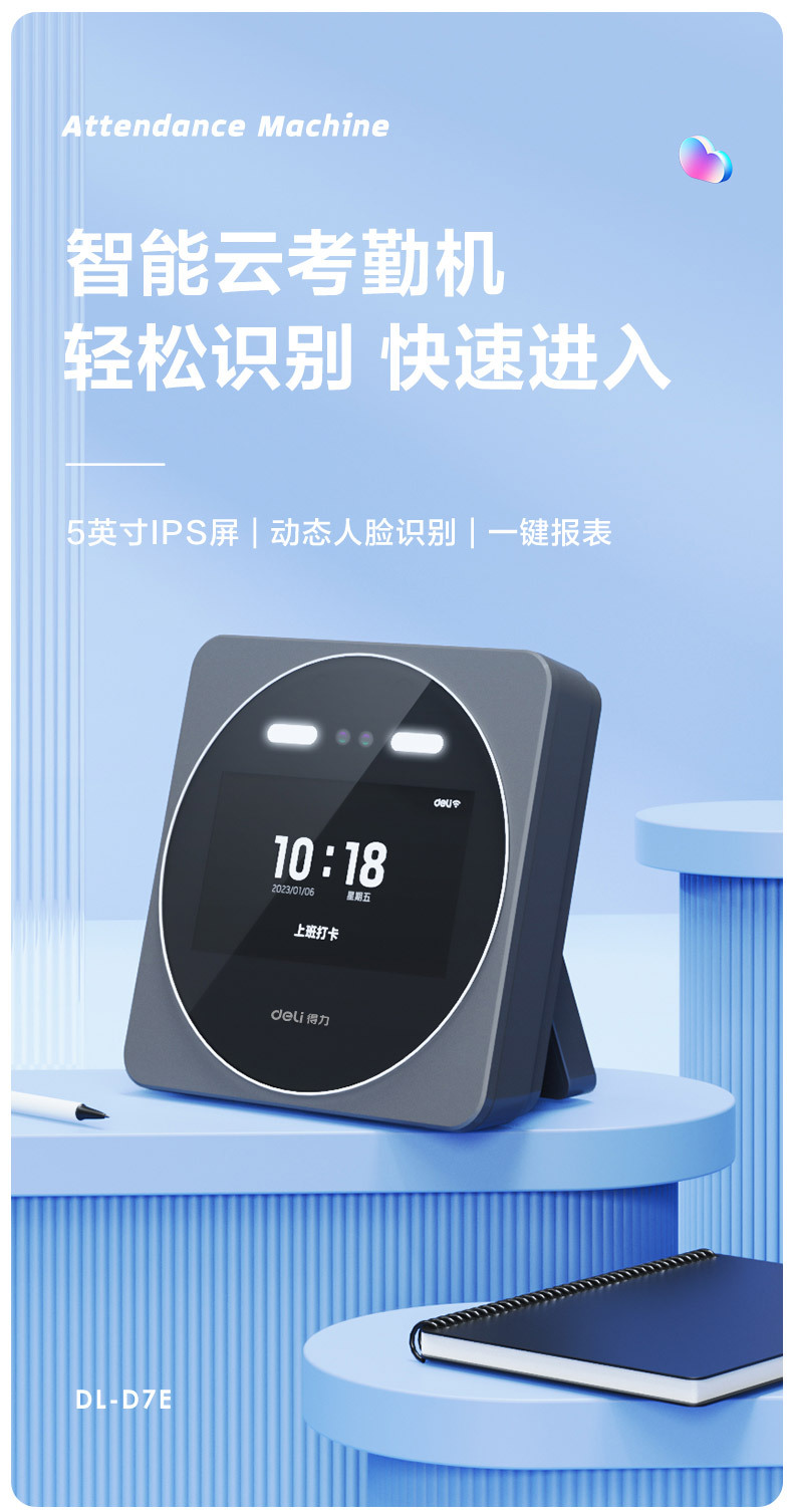 델리 D7E 출석 기계 얼굴 인식 기업 직원 얼굴 브러시 로그인 무선 클라우드 출석 시계 기계