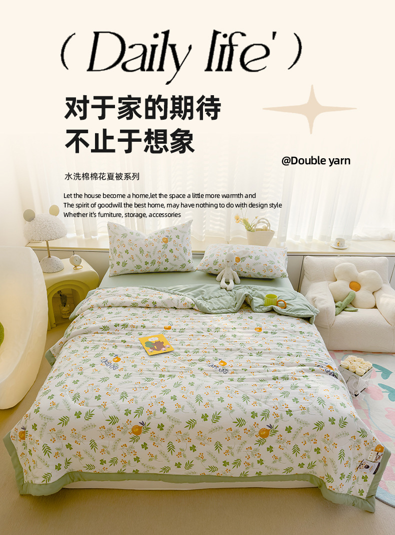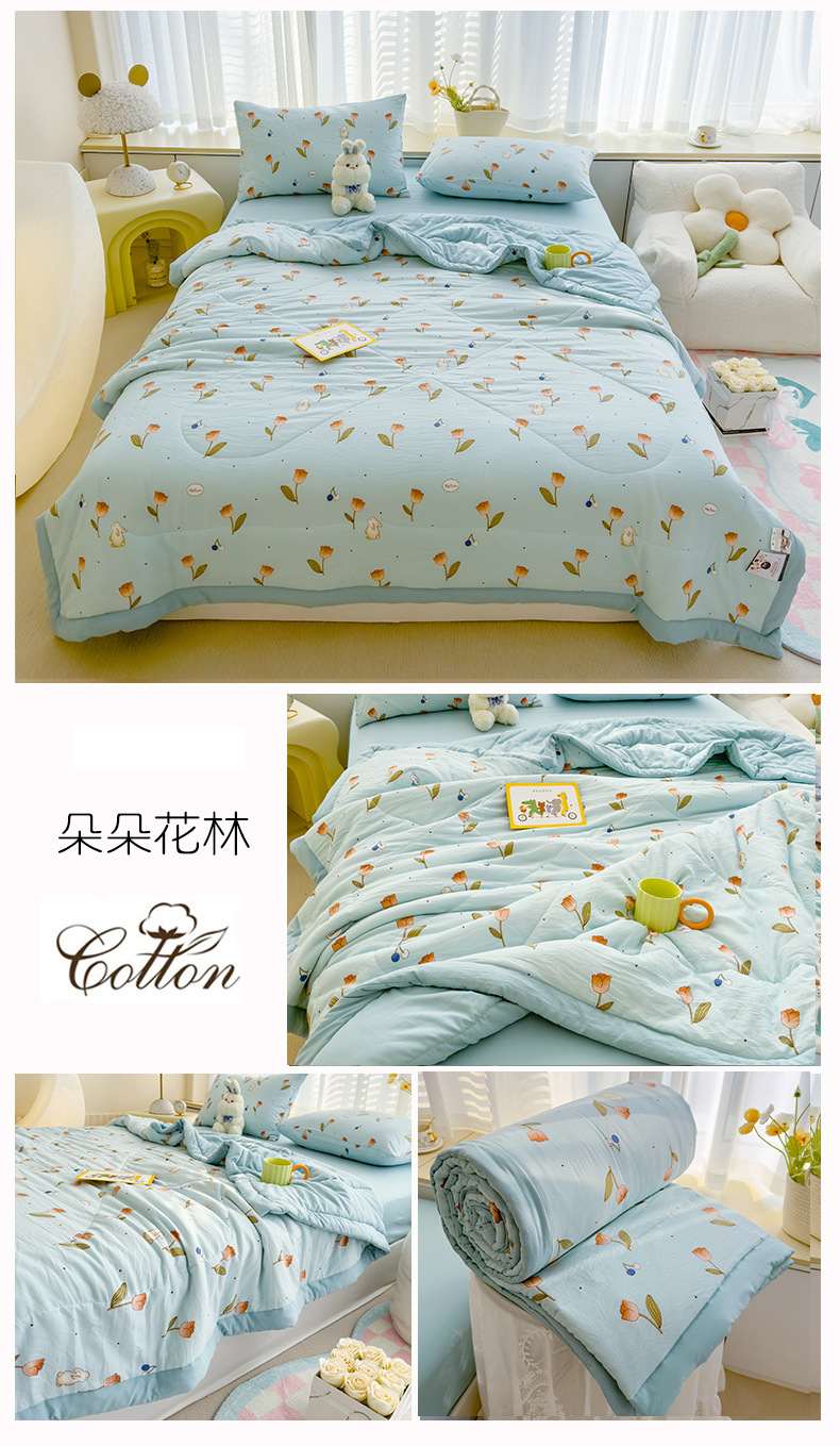 지엘리야 2025 워시드 코튼 여름 이불 A급 신장산 면 여름 시원한 이불 테두리 처리 에어컨 이불 도매 신장산 면 이불스토어 가기