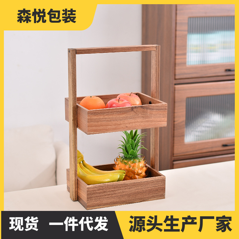 더블 레이어 솔리드 우드 스토리지 랙 거실 데스크탑 과일 스낵 보관 바구니 주방 보관 나무 다층 스토리지 랙