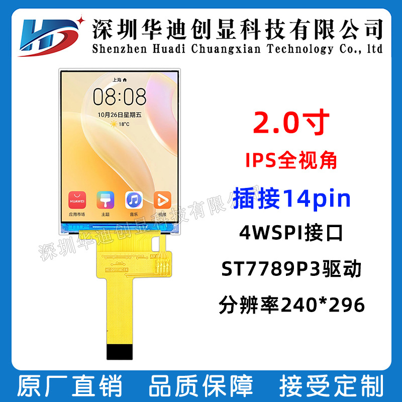 2.0 인치 ips LCD 화면 tft 스마트 시계 악기 산업 LCD 디스플레이 240X320 해상도 7789