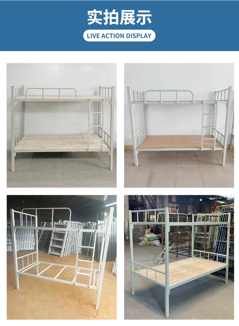 제조업체는 프로필 이층 철제 침대 학교 기숙사 철 프레임 침대 직원 높고 낮은 철제 침대 건설 현장 이층 철제 침대를 공급합니다.스토어 가기