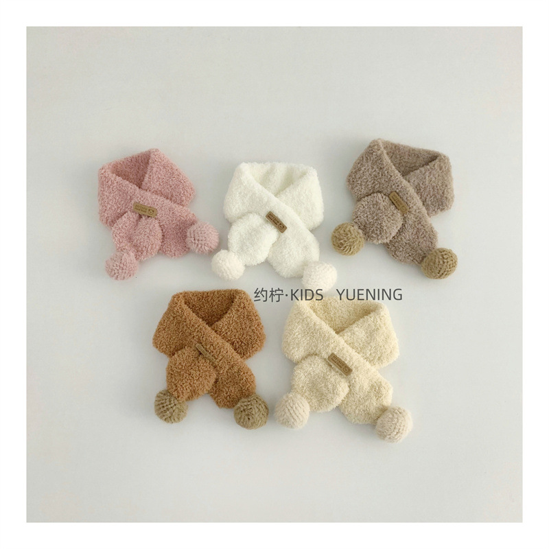 서양식 올 매치 어린이 니트 스카프 겨울 야외 따뜻한 신선한 아기 단색 봉제 크로스 스카프