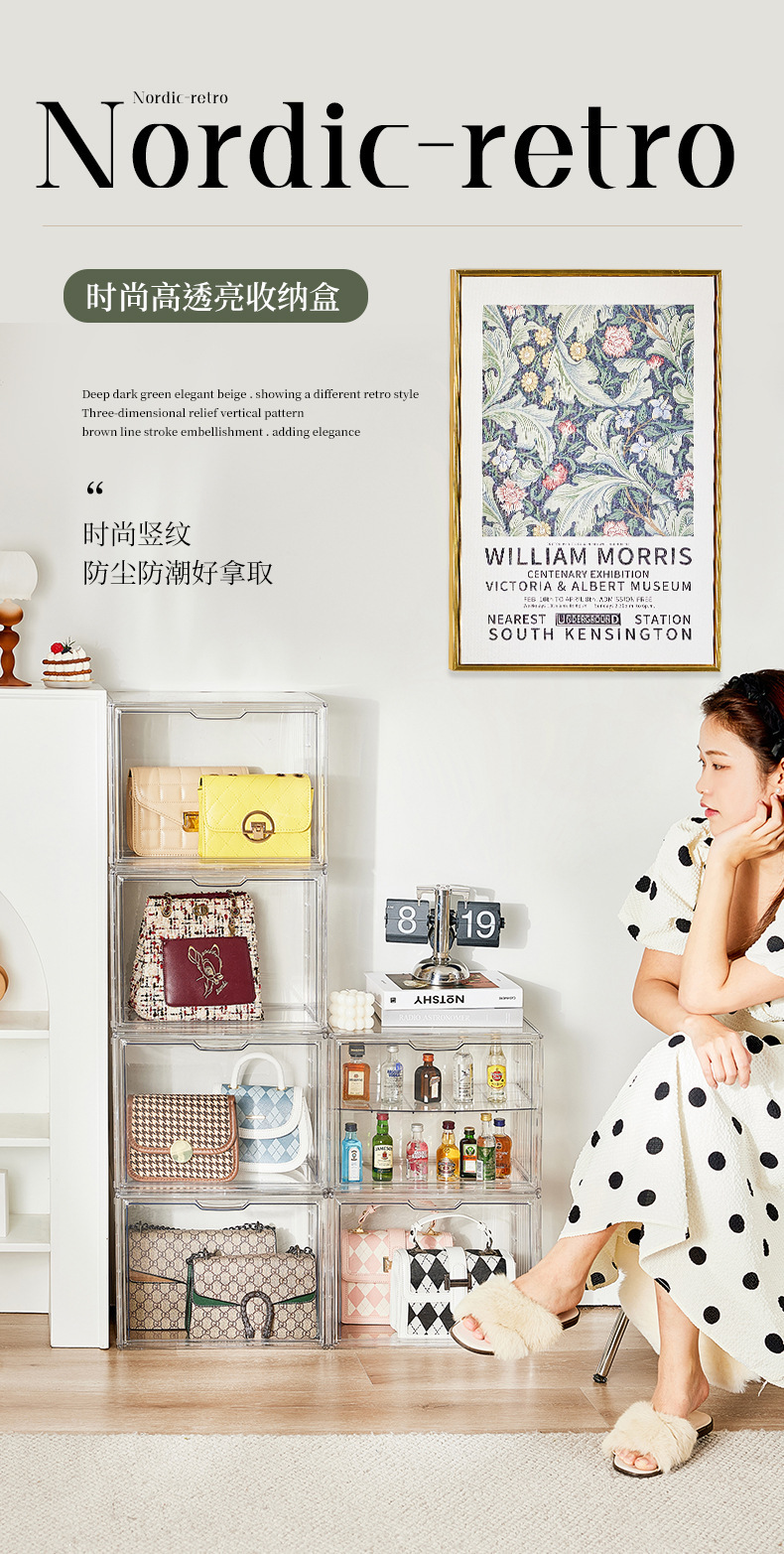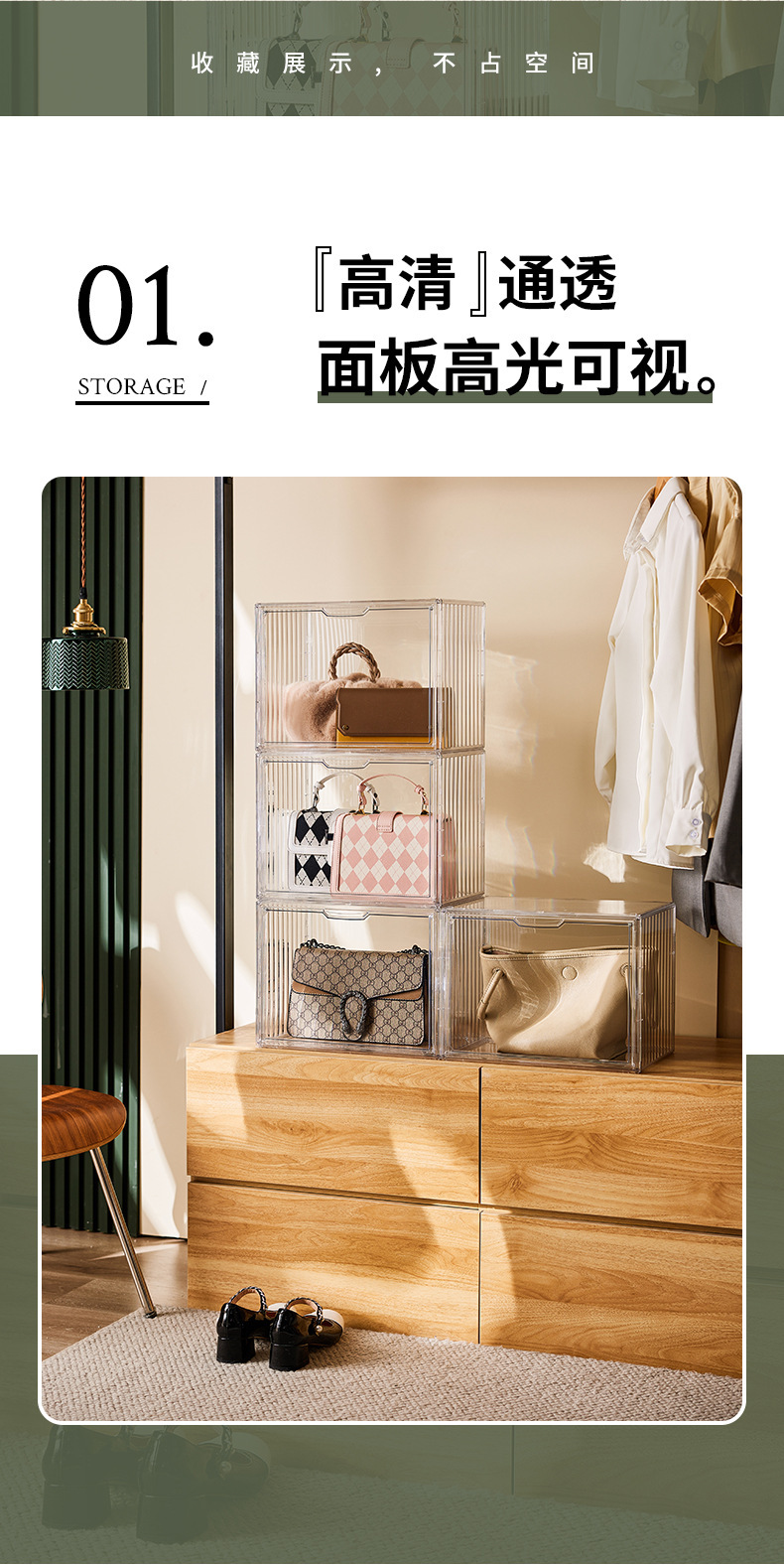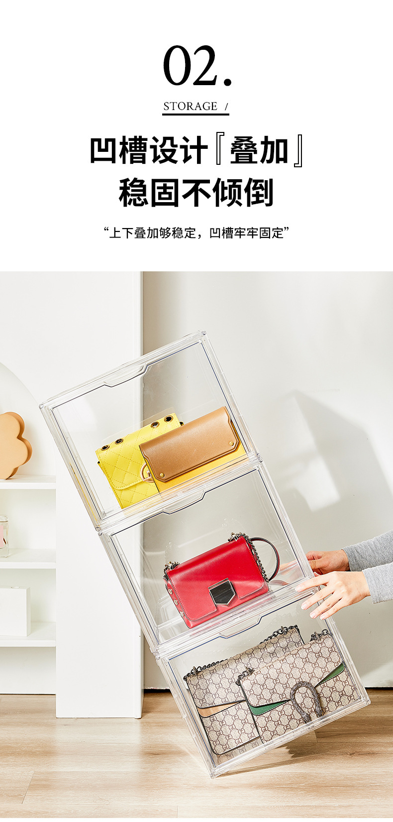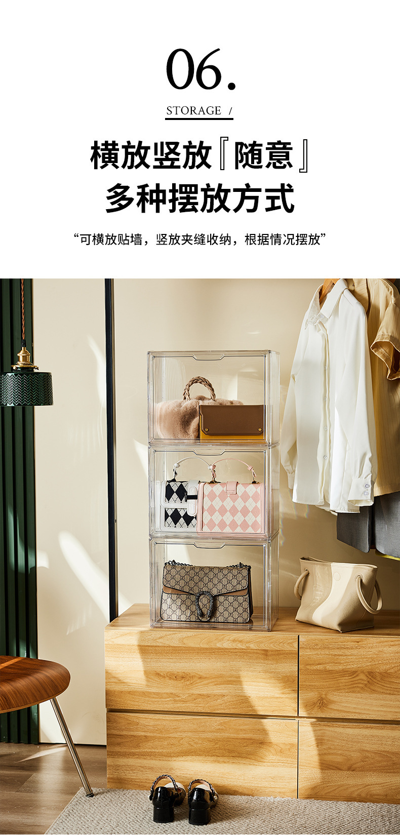 아크릴 가방 저장 상자 가정용 옷장 방진 디스플레이 스탠드 마그네틱 투명 디스플레이 상자 공장 국경 도매스토어 가기