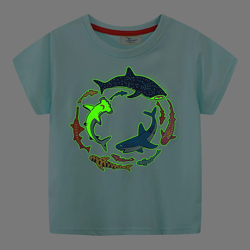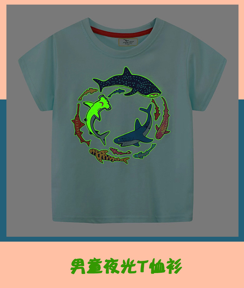 유럽과 미국의 새로운 스타일 야광 여름 남아 티셔츠 도매, 유아 및 어린이용 반팔 티셔츠, 라운드넥 상의스토어 가기