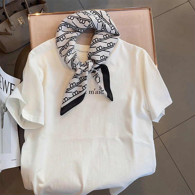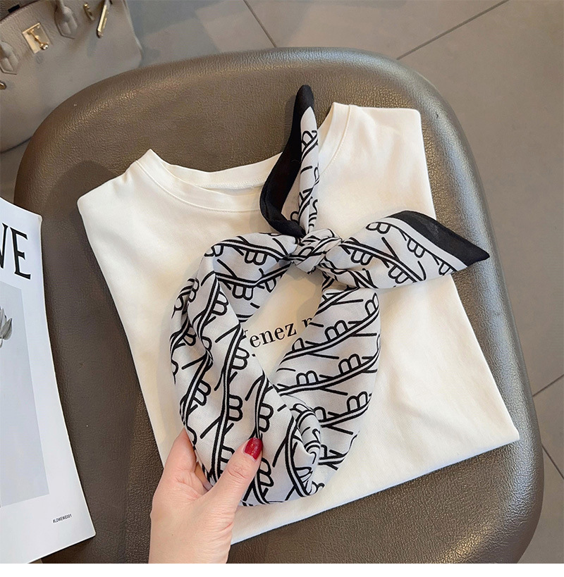 여성용 실크 스카프 봄 패션 올 매치 작은 사각형 스카프면 및 린넨 스카프 셔츠 서양식 한국 스타일의 비즈니스 착용 스카프 얇은스토어 가기