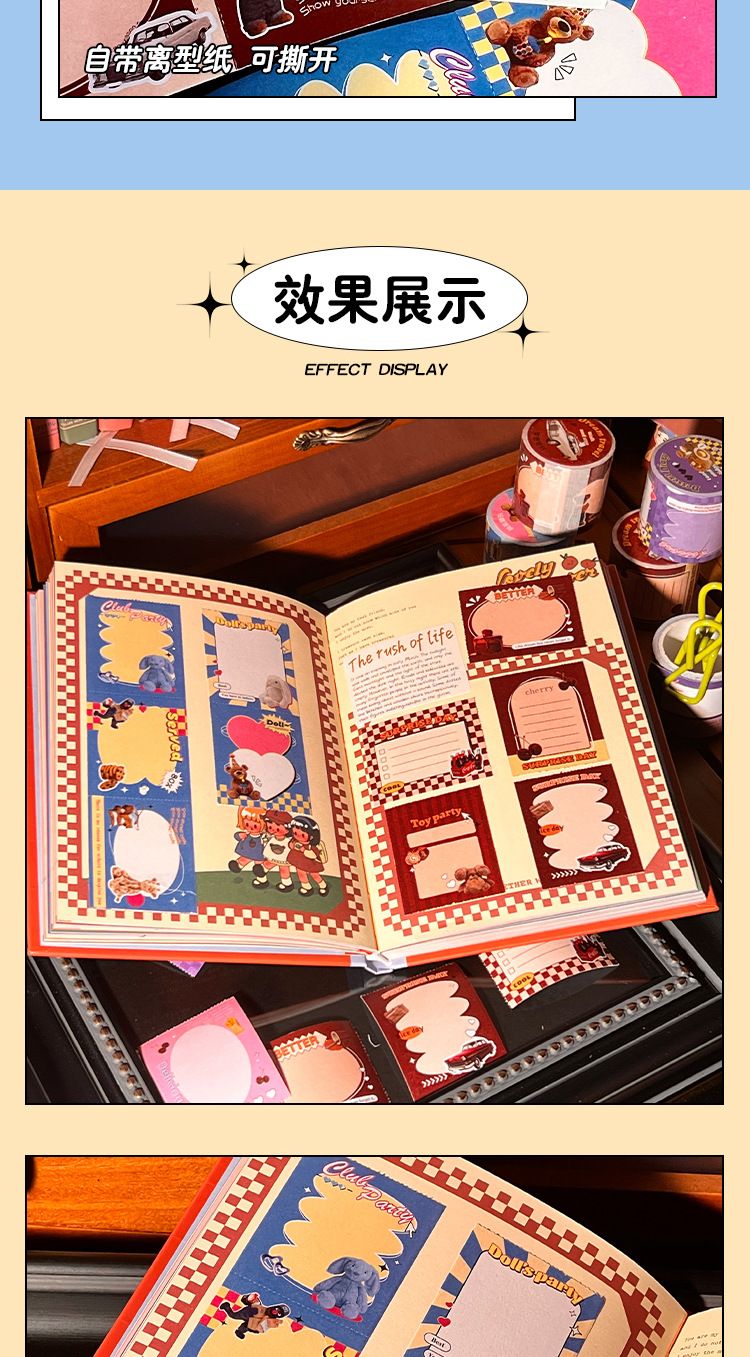미국 노트 쓰기 가능한 노트 테이프 라벨 밀봉 핸드북 스티커 잡지 마커 대화 필름