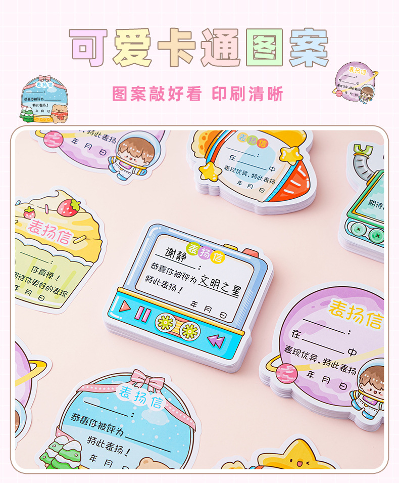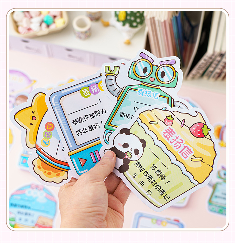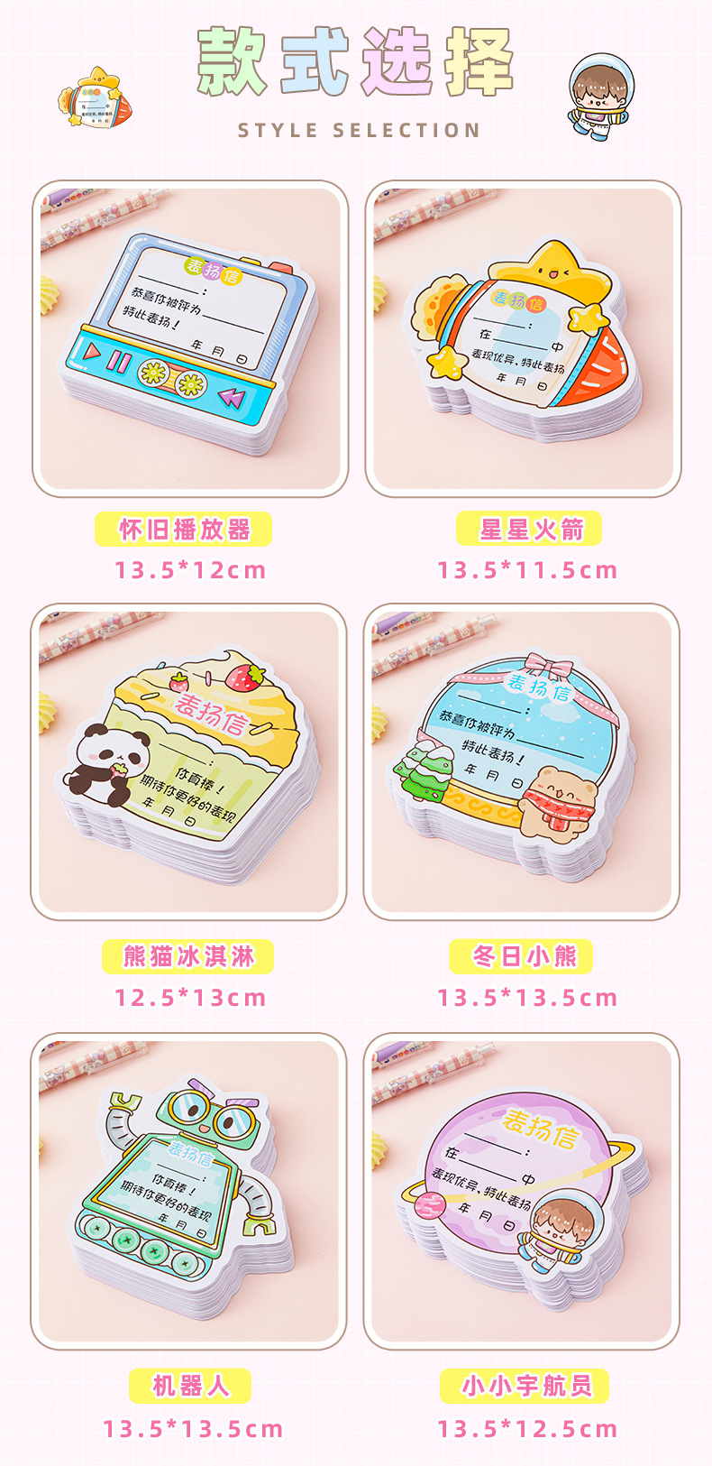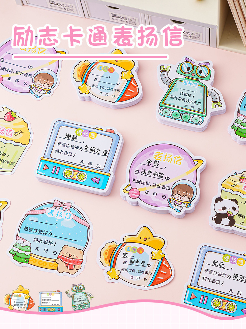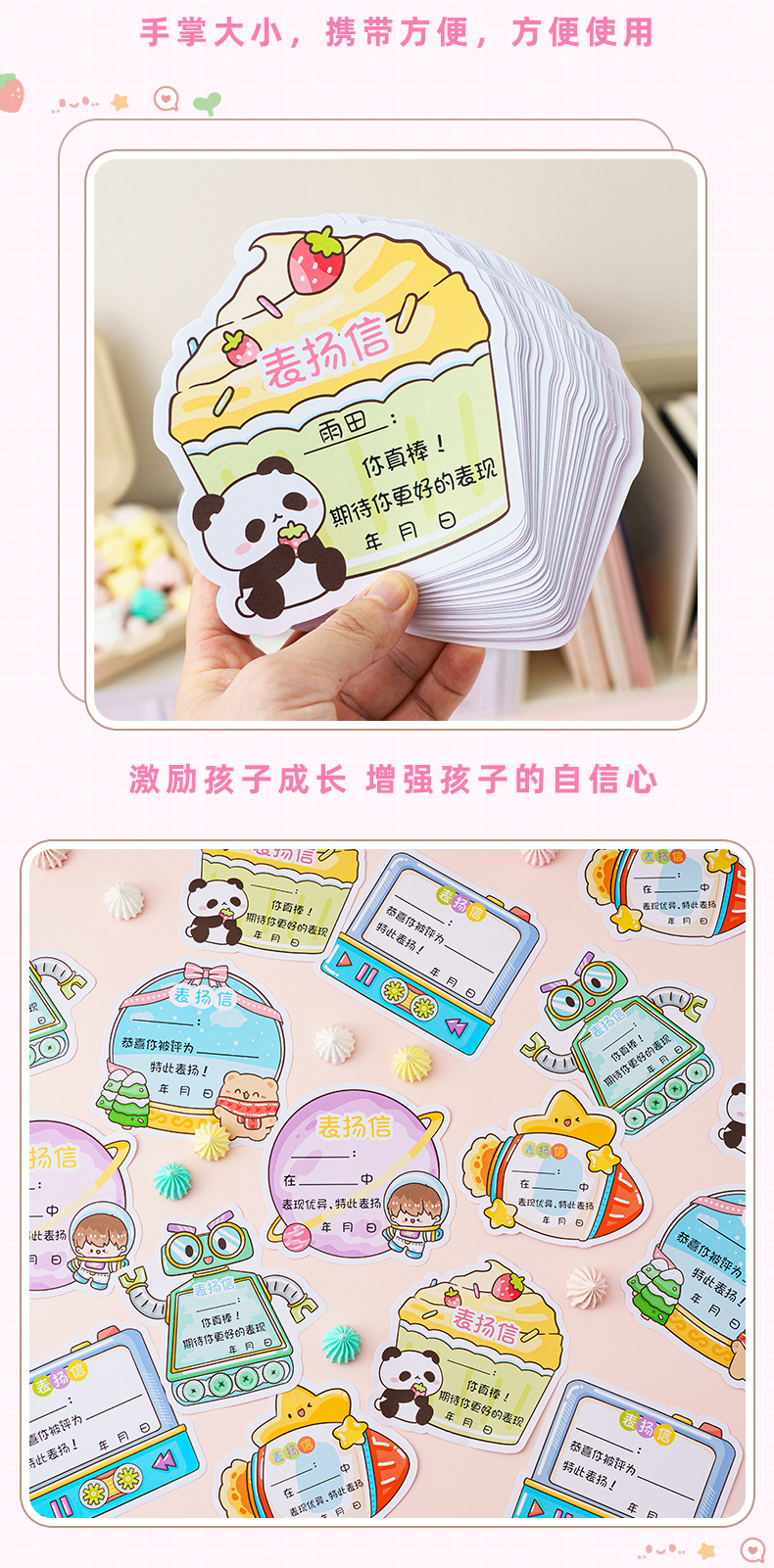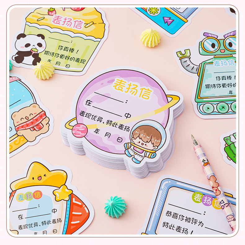 어린이 편지 칭찬 특별 한 모양의 유니버설 만화 빈 작은 상 창조적 인 보상 격려 편지 산하오 학생 템플릿 종이스토어 가기