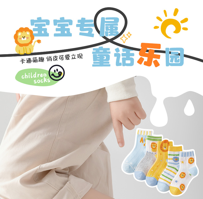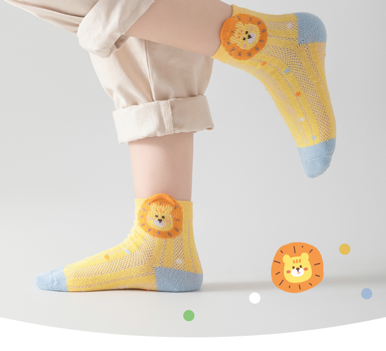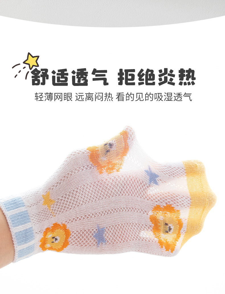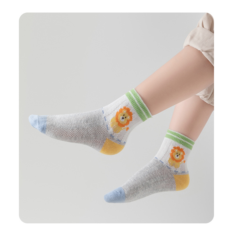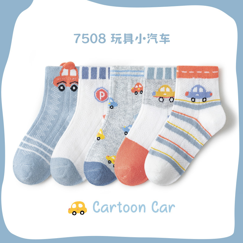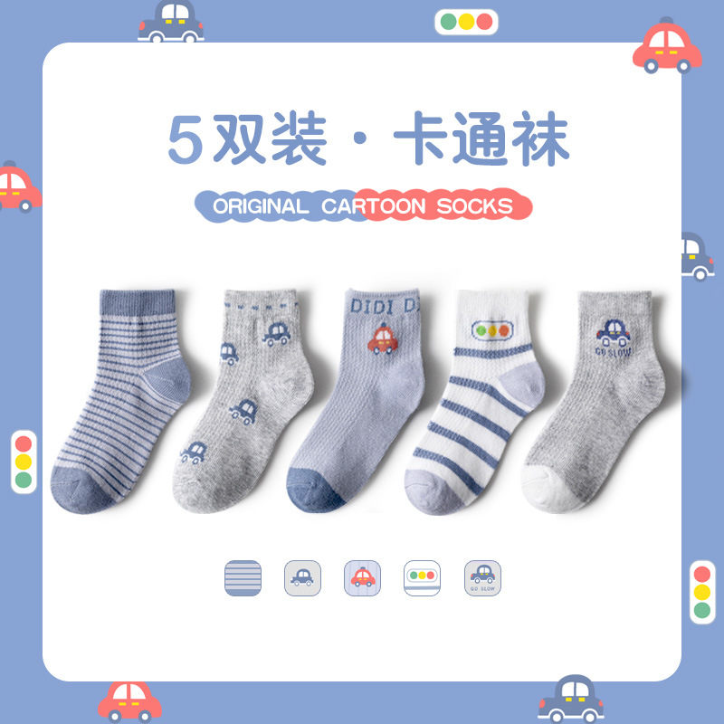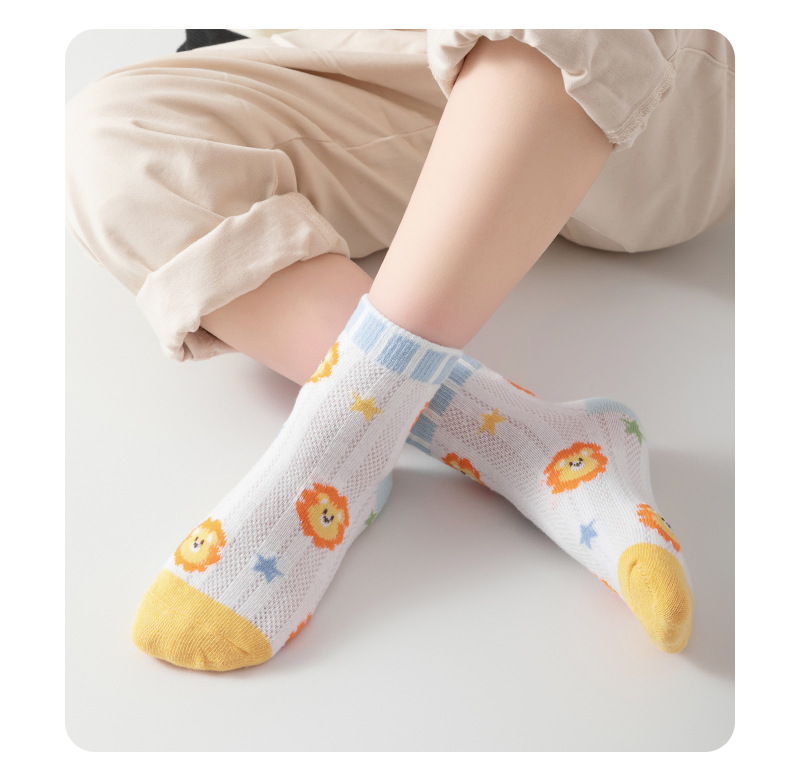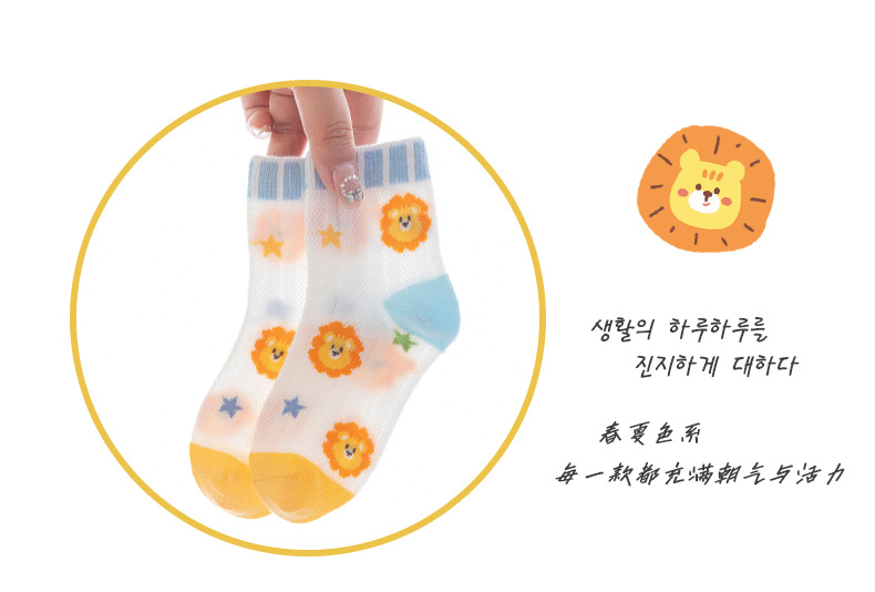 2024 봄과 여름 새로운 어린이 양말 얇은 메쉬 만화 소년 양말 통기성 땀 흡수 중간 튜브 양말 도매스토어 가기